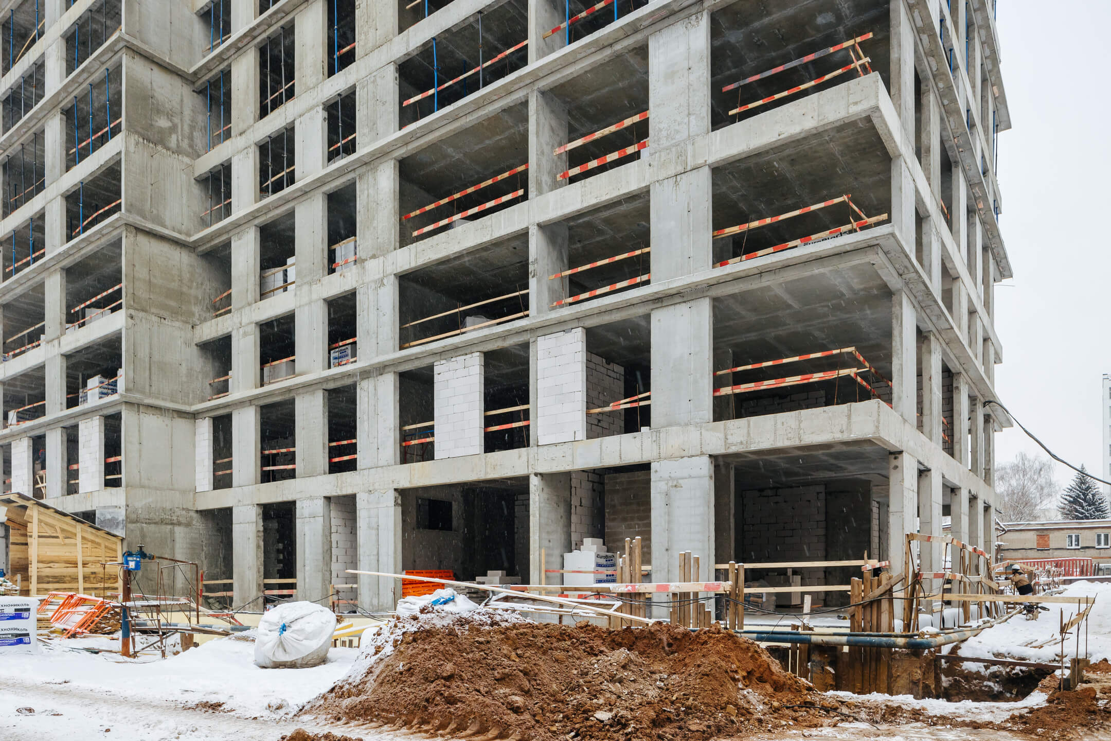Этап 1.1 (корпус 1 и 2): ведутся работы по армированию и бетонированию стен и плит перекрытия 11 и 12 этажей, в также кладочные работы на 3, 4, 5 этажах;