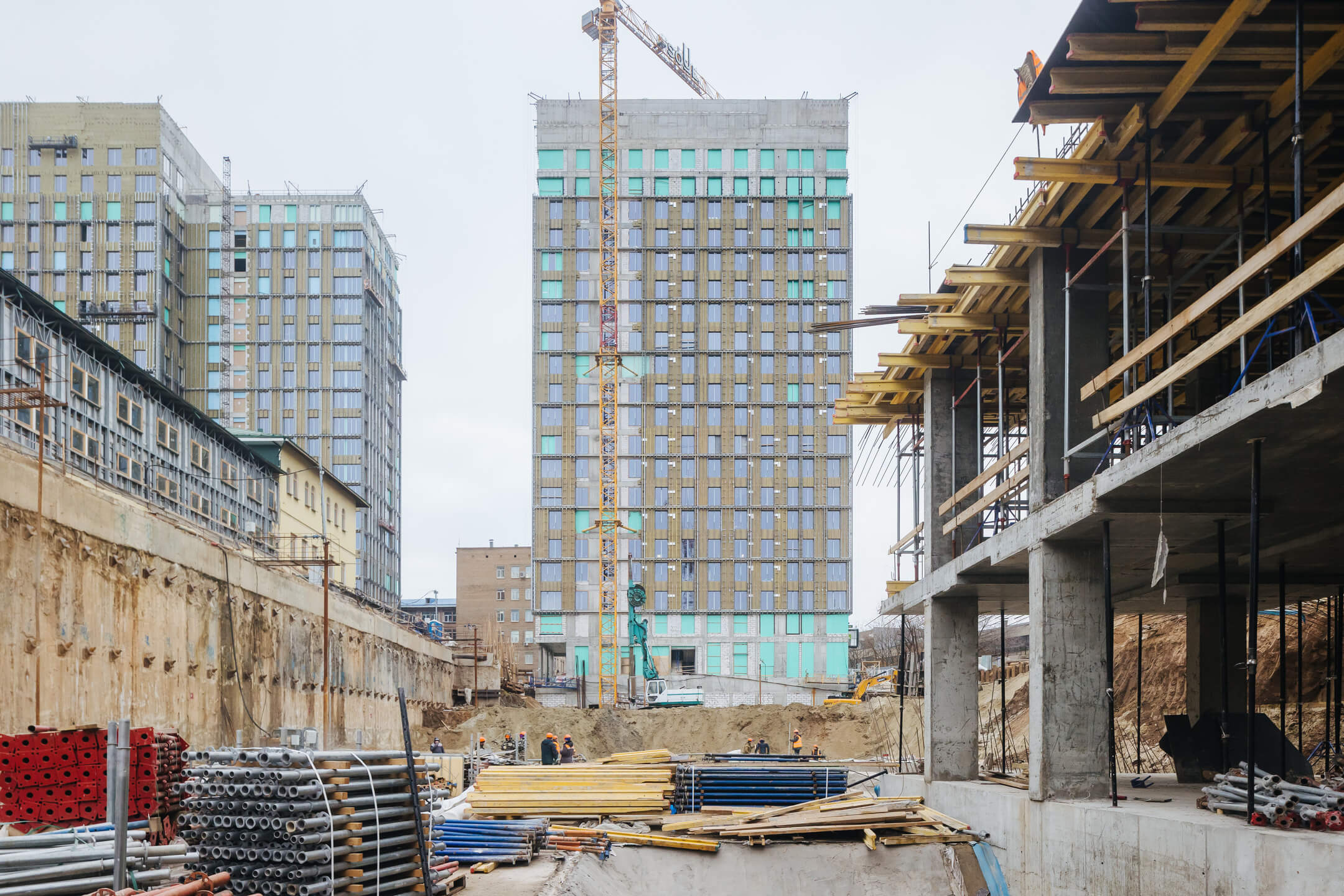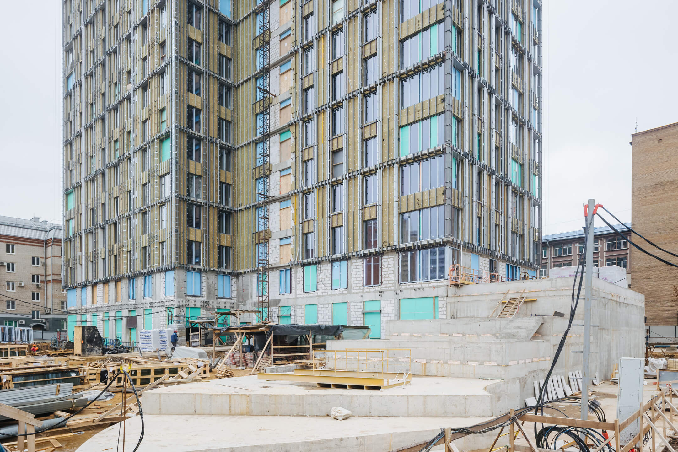 - Ведутся каменные работы на 19-21 этажах