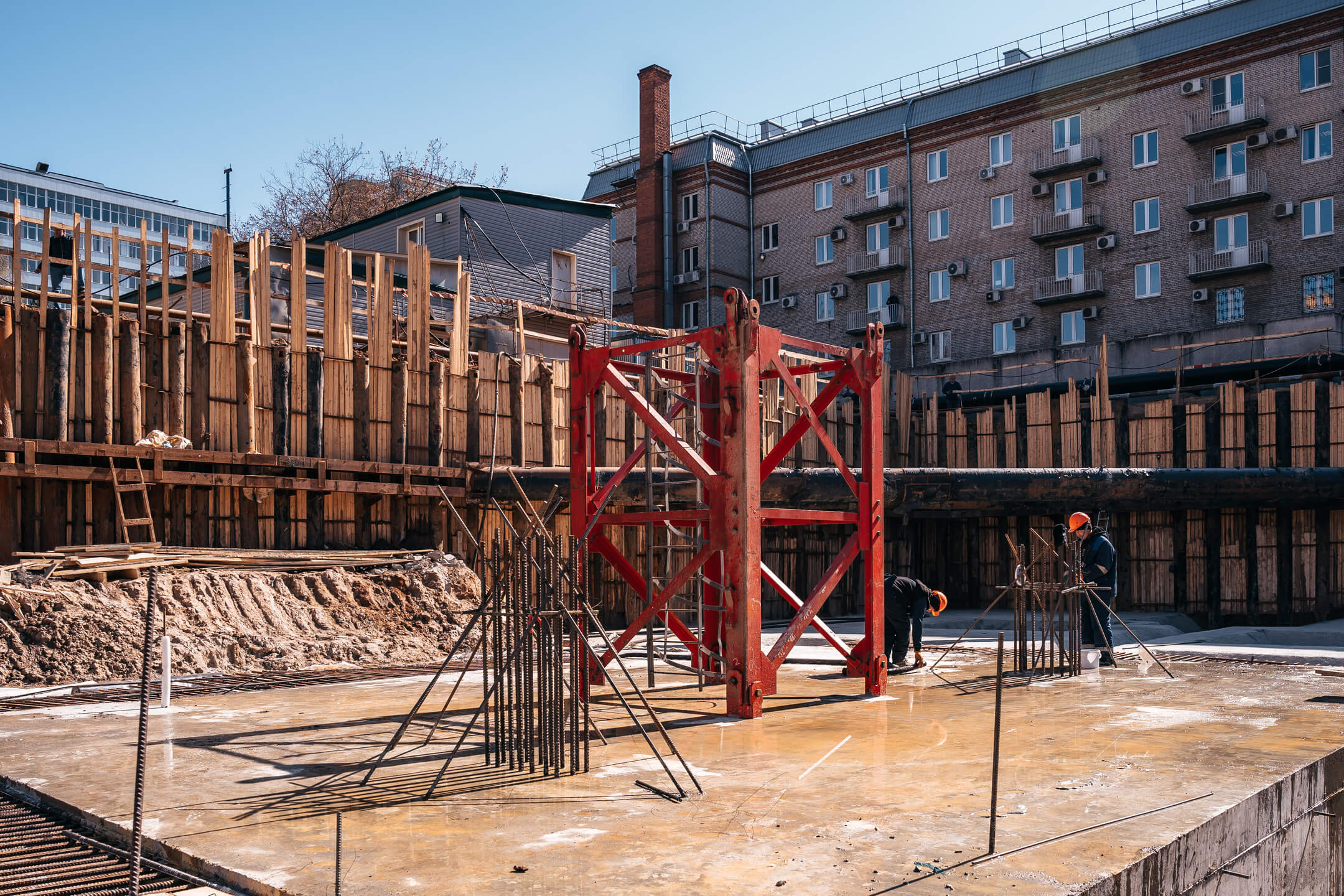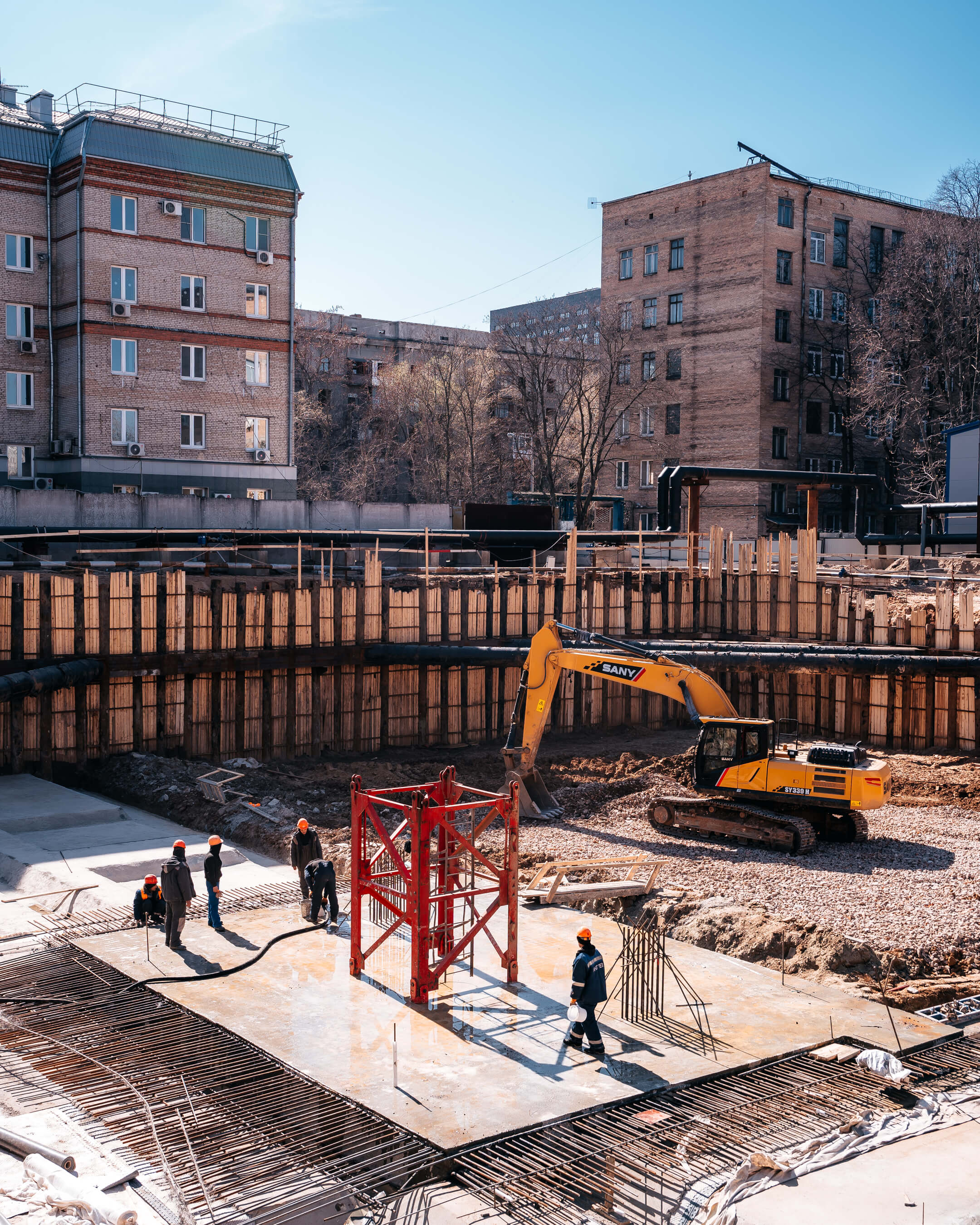 - Ведется разработка котлована под корпус 2 и паркинг.