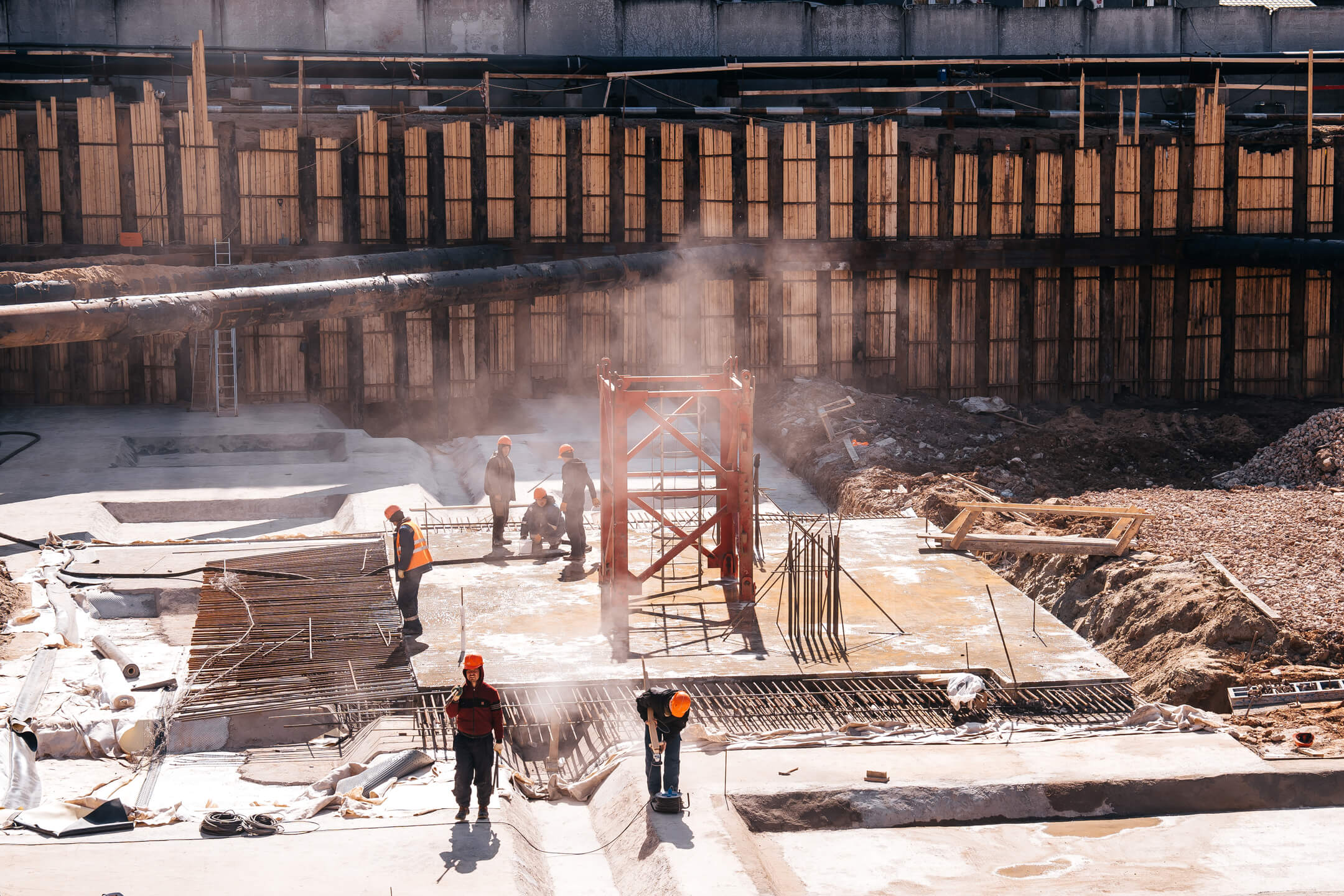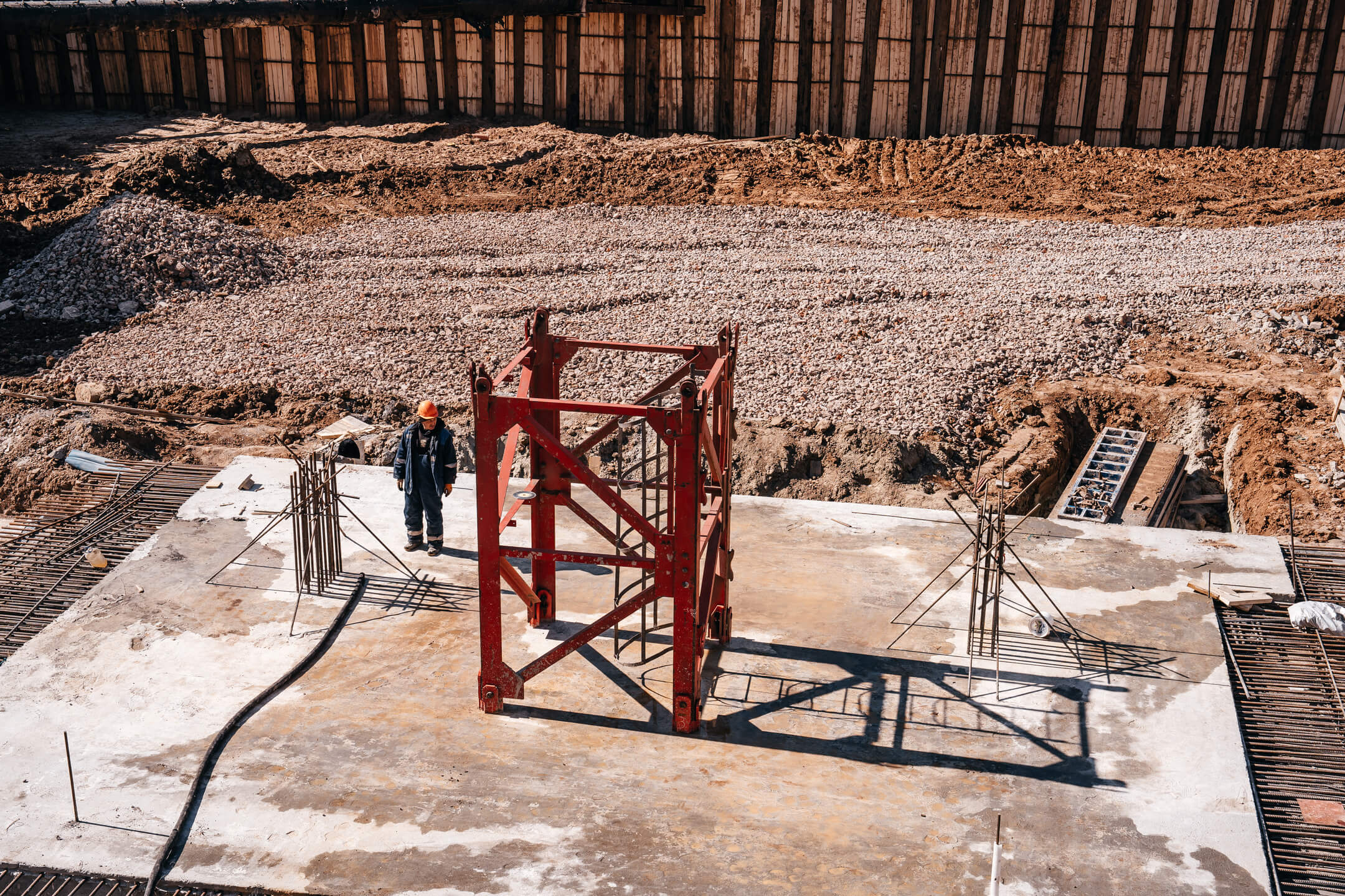 - Выполнено бетонирование первой захватки фундаментной плиты стилобата, включающую в себя 1 секцию башенного крана для корпуса 1.