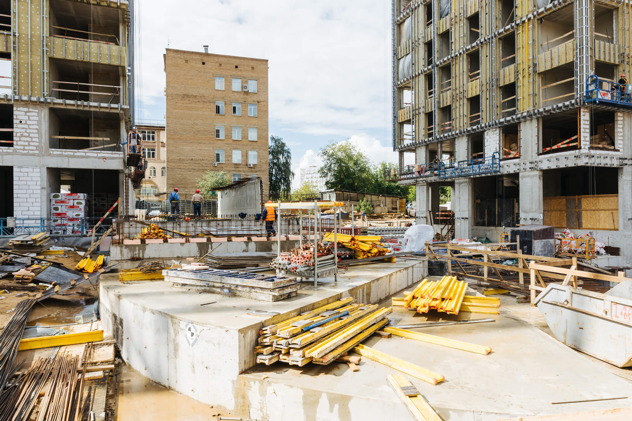 Этап 1.2: устройство свайного поля, шпунтового ограждения, распорной системы, грунтовых анкеров, водопонижения. Разработка котлована, снос зданий и сооружений. Мобилизация подрядчика на монолитные работы.