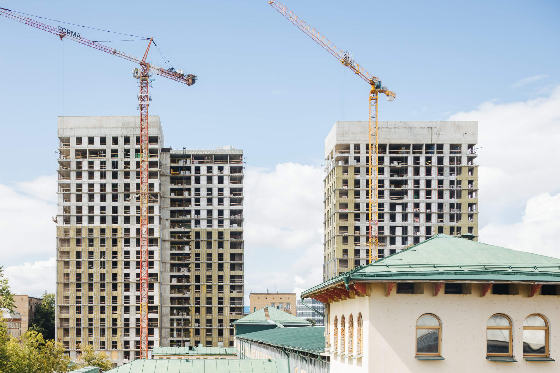 Этап 1.1 (корпус 1): Ведутся кровельные работы. Продолжаются каменные работы на 11-20 этажах. Ведутся отделочные работы на 3 этаже. В части внутренних инженерных систем ведется устройство отопления, вентиляции, ведутся электромонтажные работы. Фасад: монтаж противопожарной отсечки, минераловатного утеплителя, подсистемы.