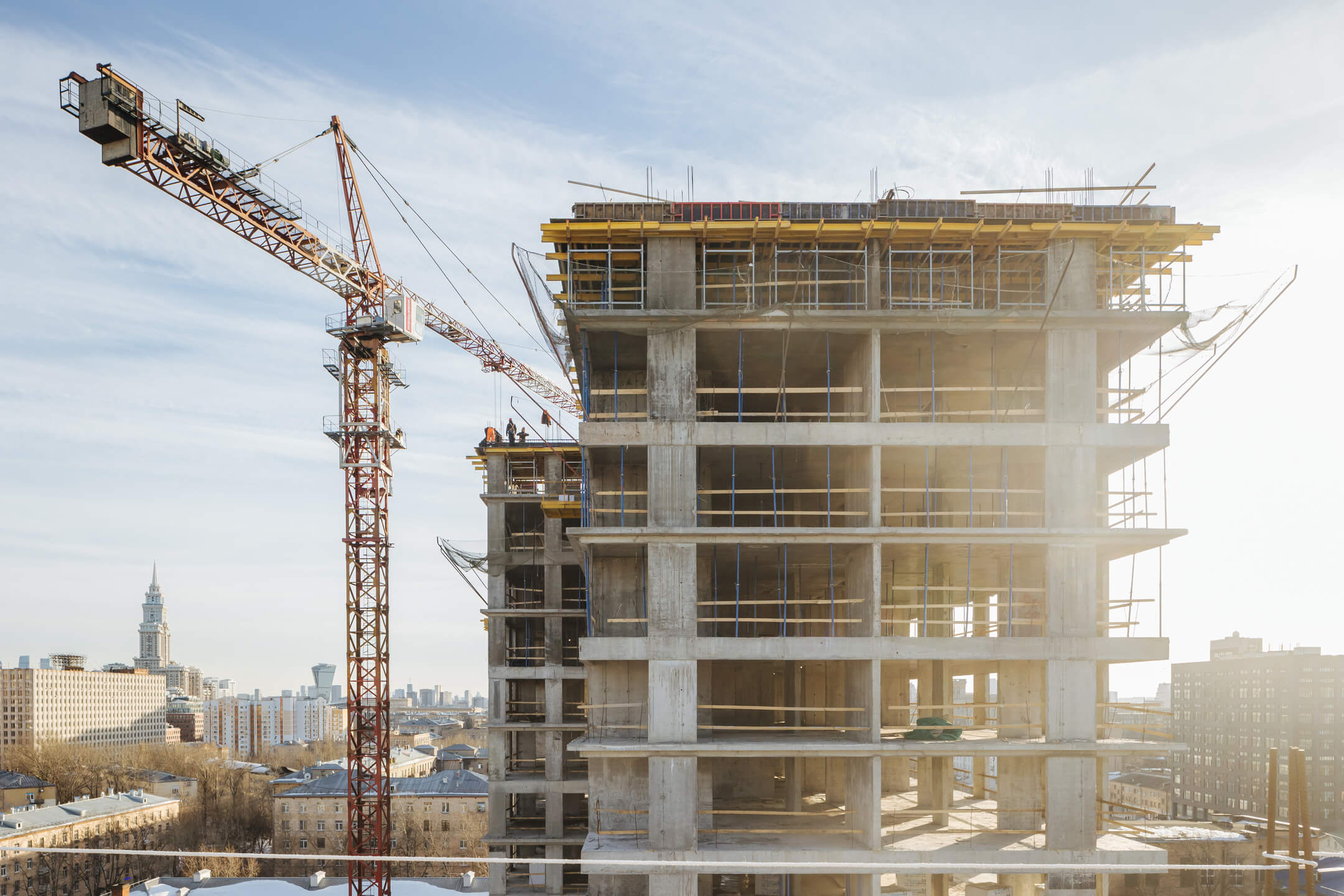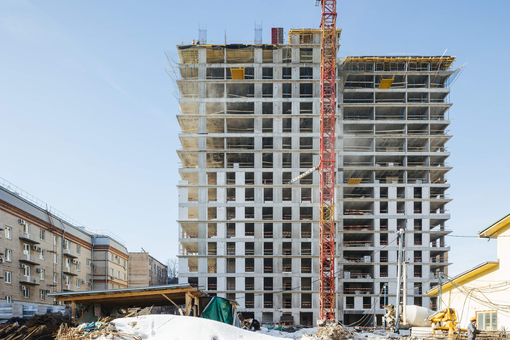 Этап 1.1 (корпус 1): работы по армированию/бетонированию плиты перекрытия 17 этажа и вертикальных конструкций 18 этажа, кладочные работы на 2-10 этажах, мобилизация фасадной организации.