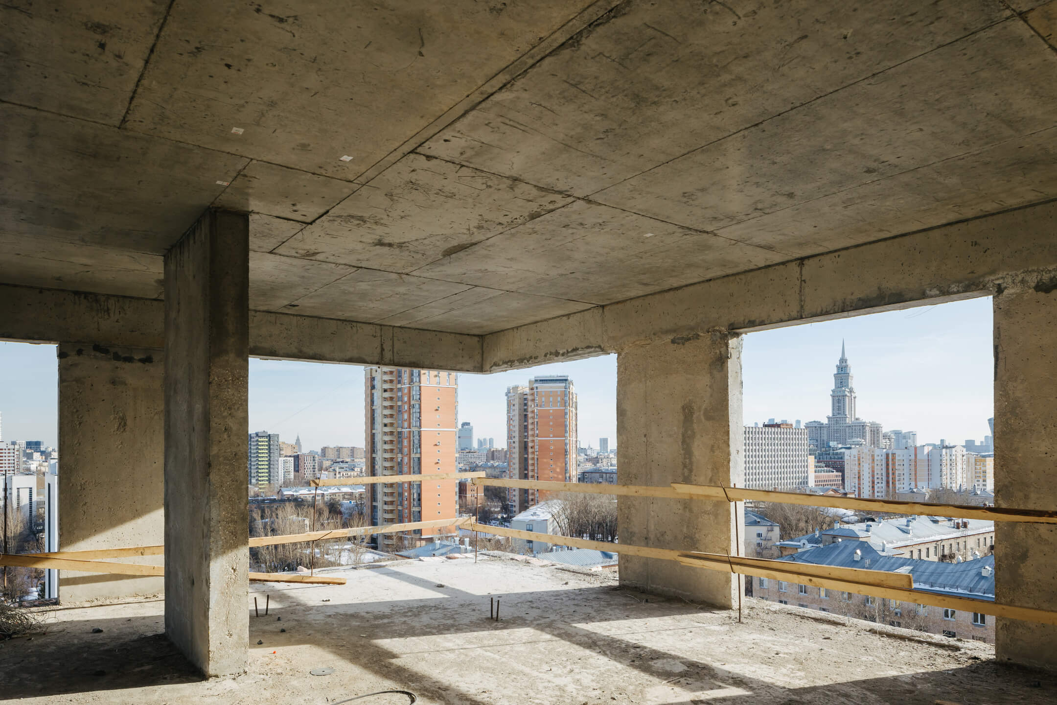 Этап 1.1 (паркинг): работы по армированию/бетонированию стен и покрытия паркинга и рампы, гидроизоляция наружных стен и кровли стилобата, устройство пристенного дренажа, отсыпка пазух котлована, кладка стен и перегородок подземного этажа.
