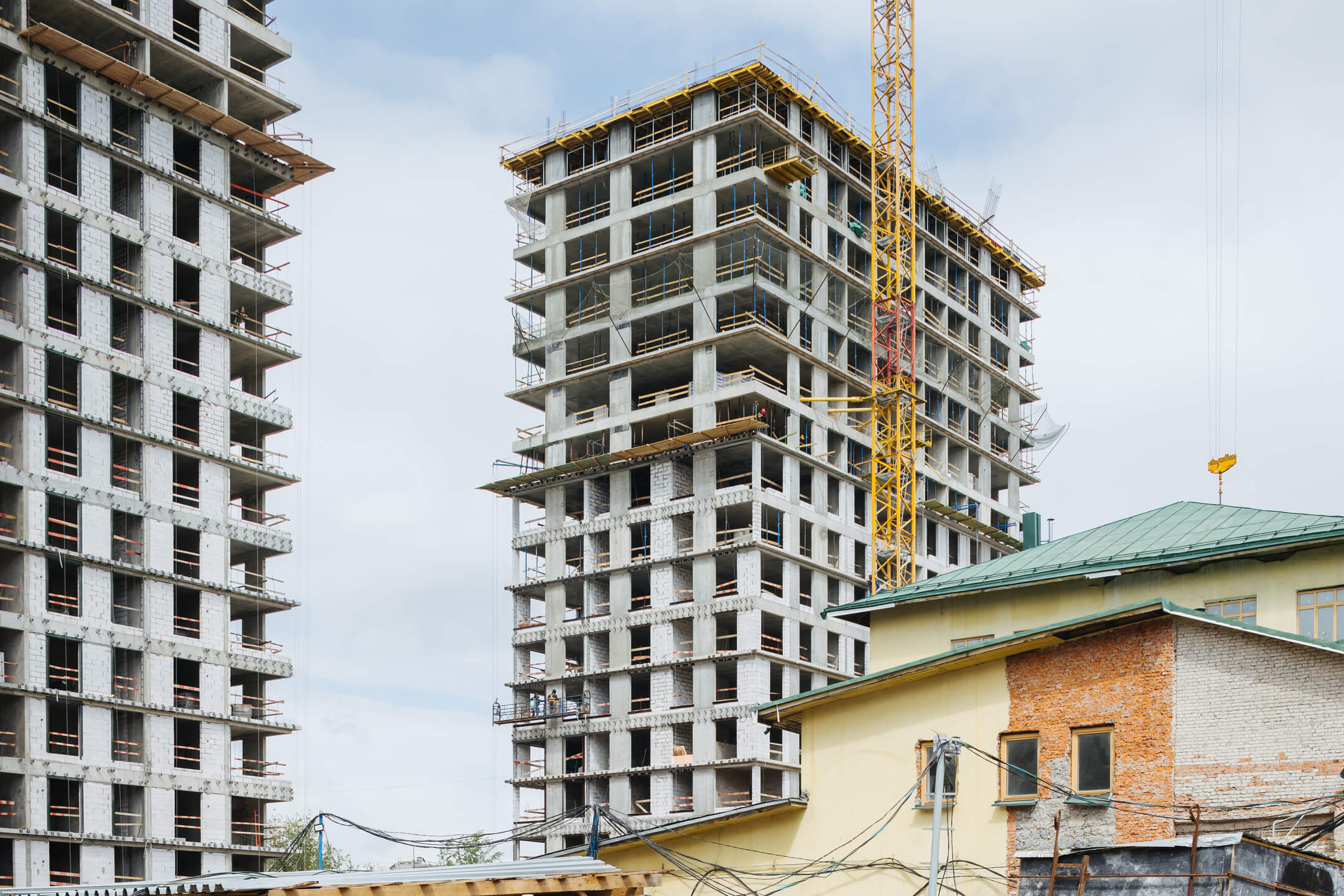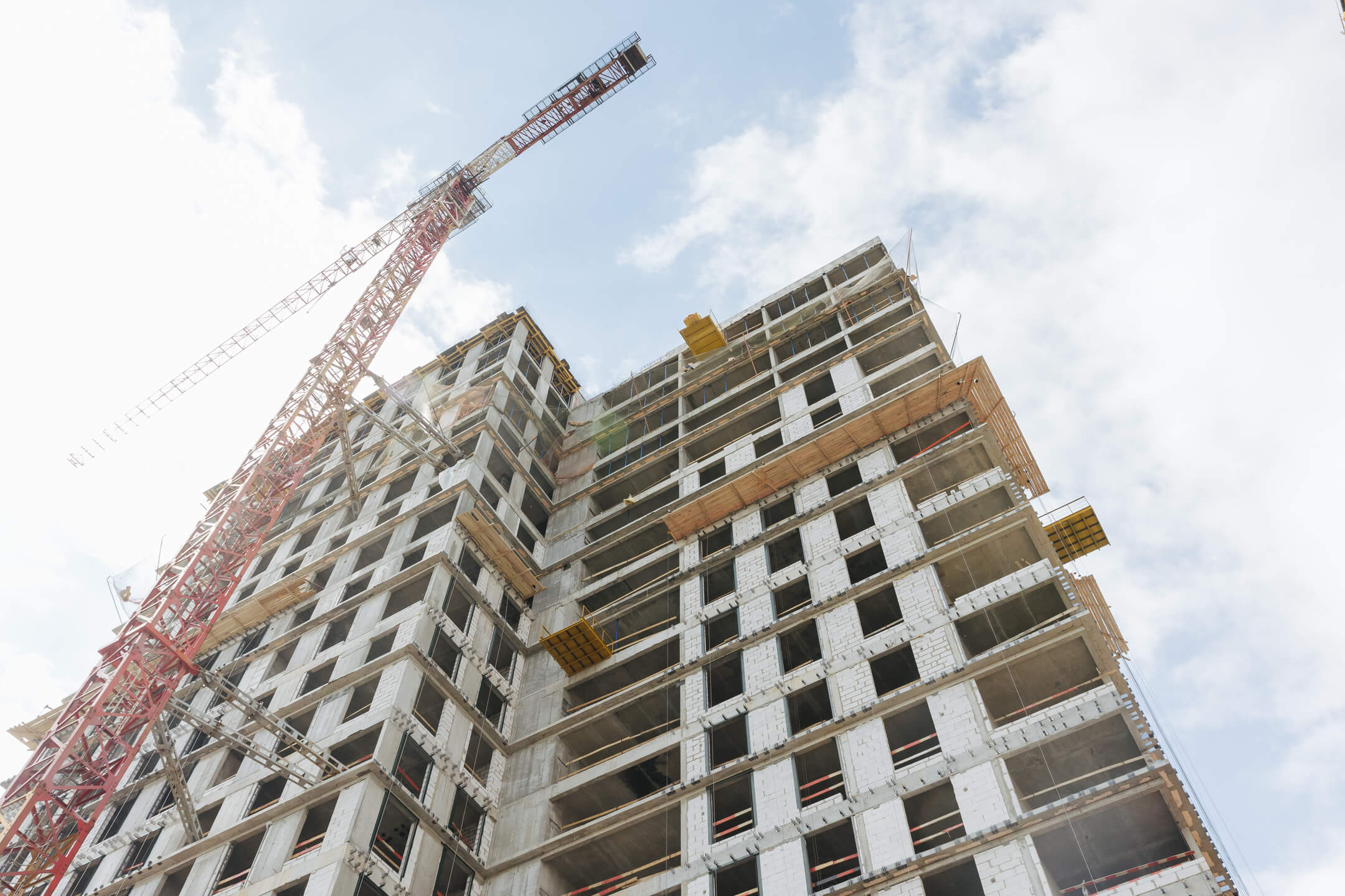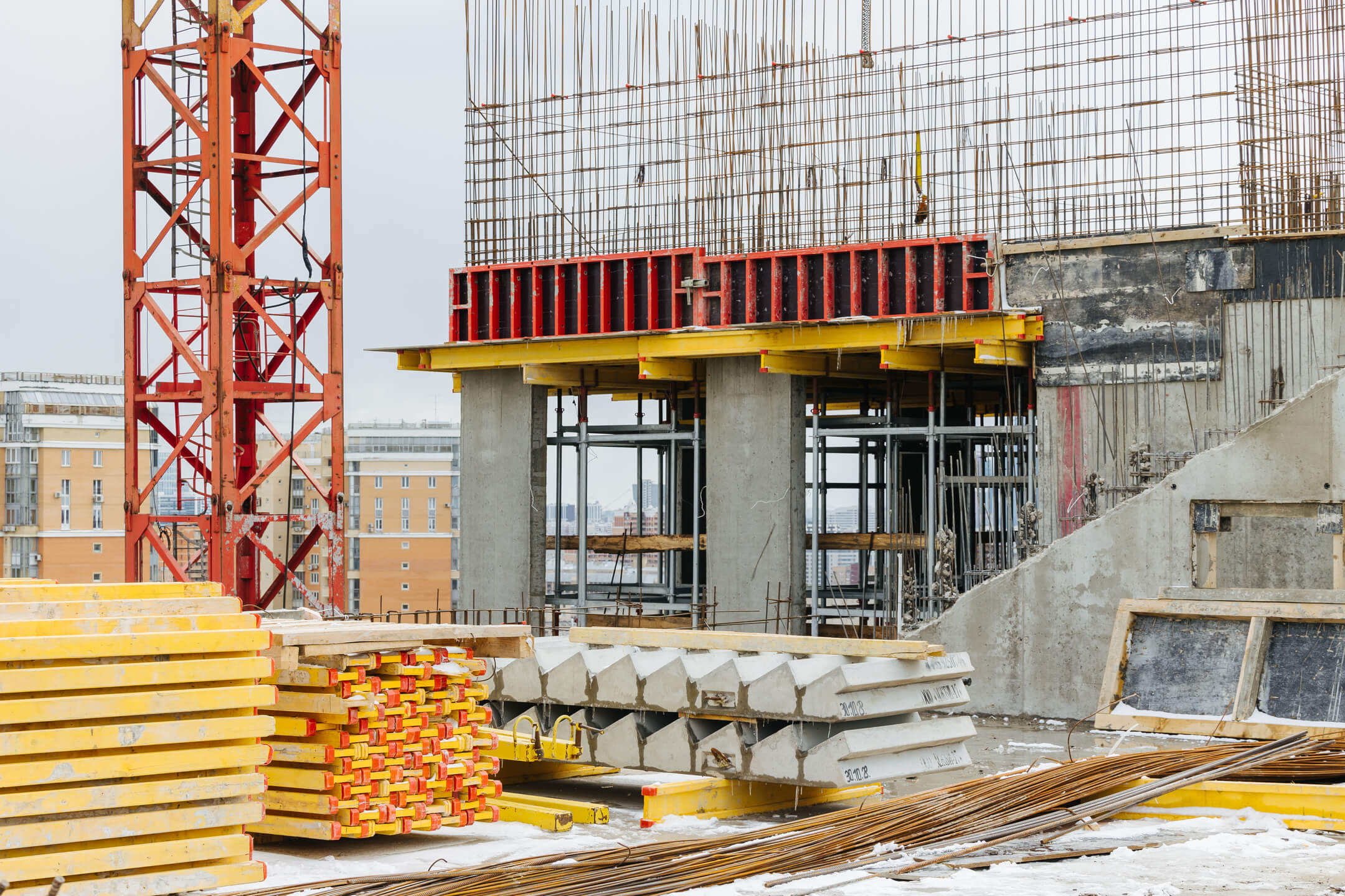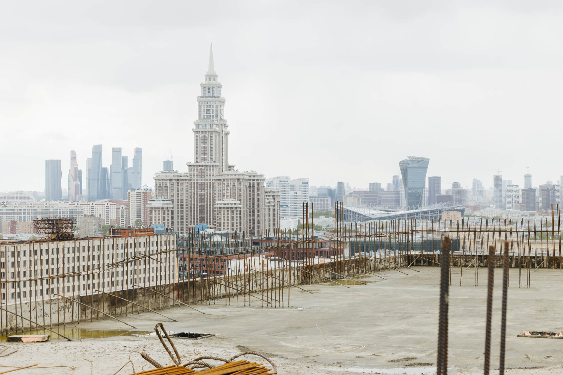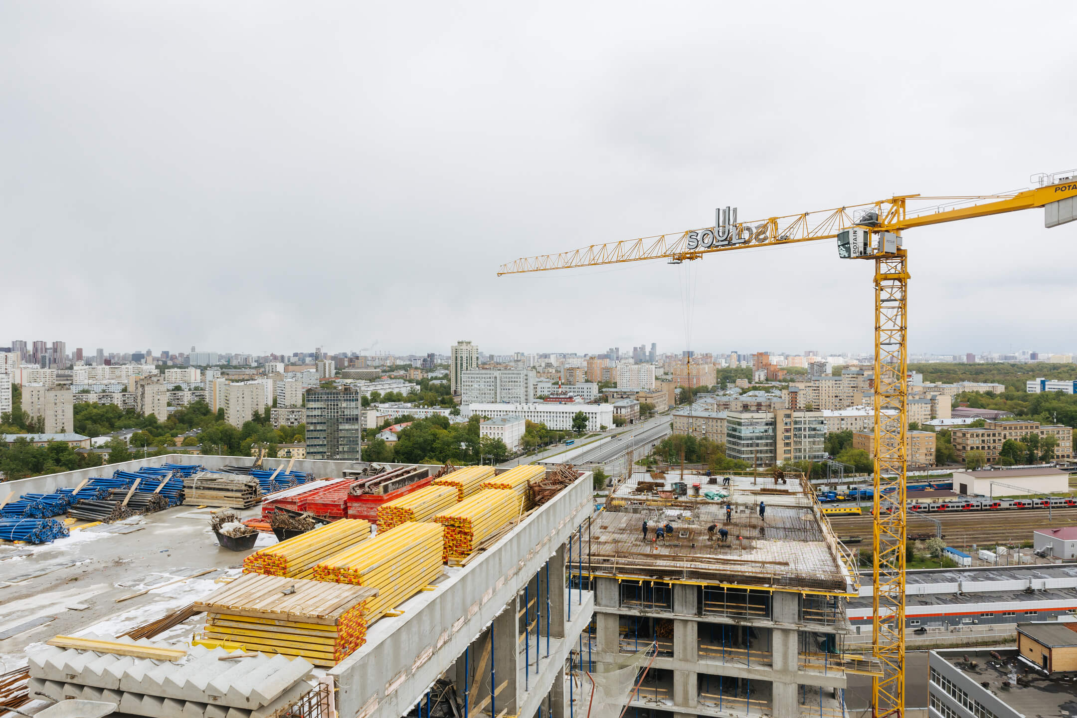 Этап 1.1 (паркинг): армирование/бетонирование стен и покрытия паркинга и рампы. Гидроизоляция наружных стен и кровли стилобата, устройство пристенного дренажа, прокладка наружных инженерных систем. Отсыпка пазух котлована, кладка стен и перегородок подземного этажа. Старт работ по устройству отопления, вентиляции, противопожарного водопровода.