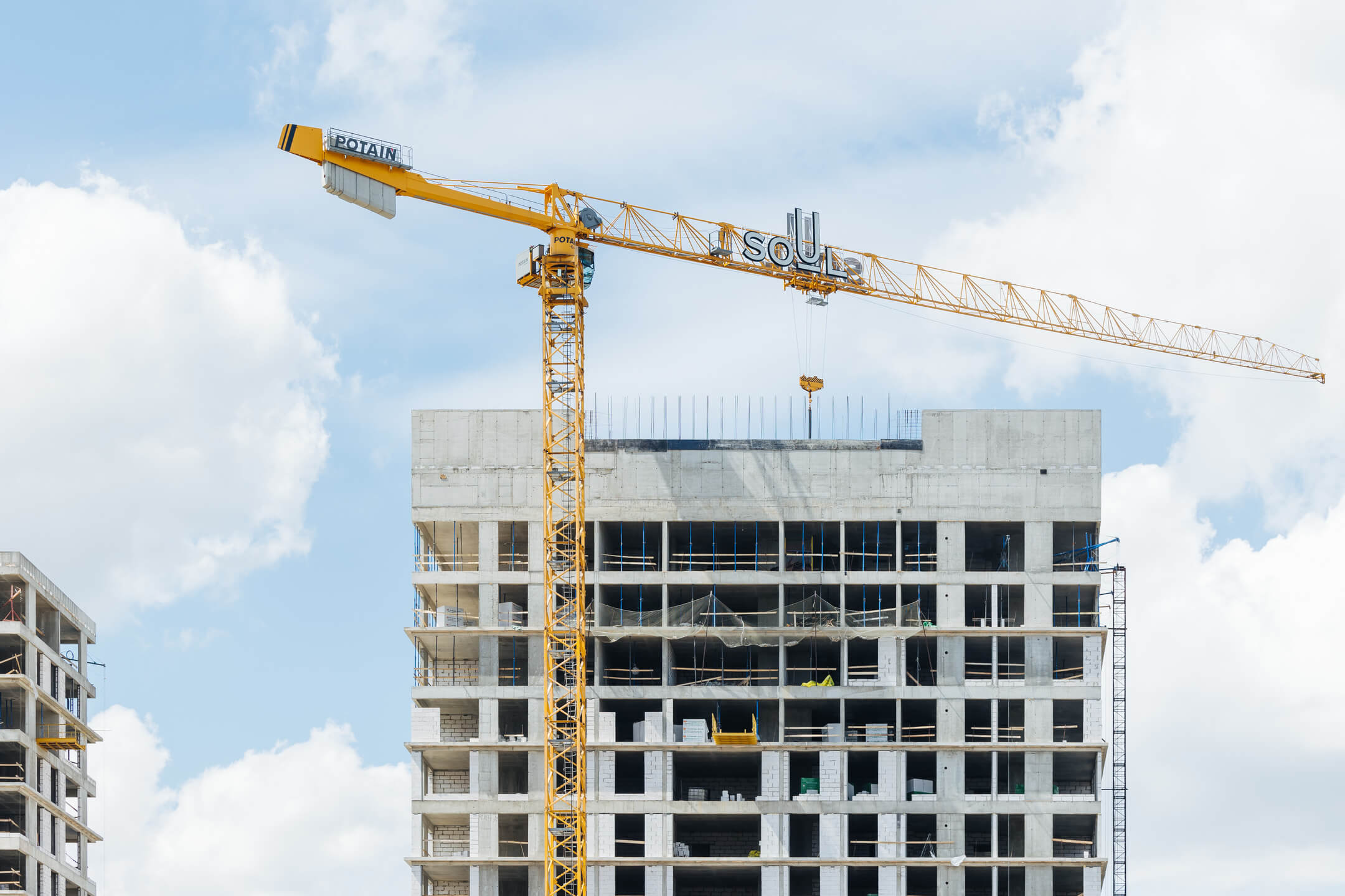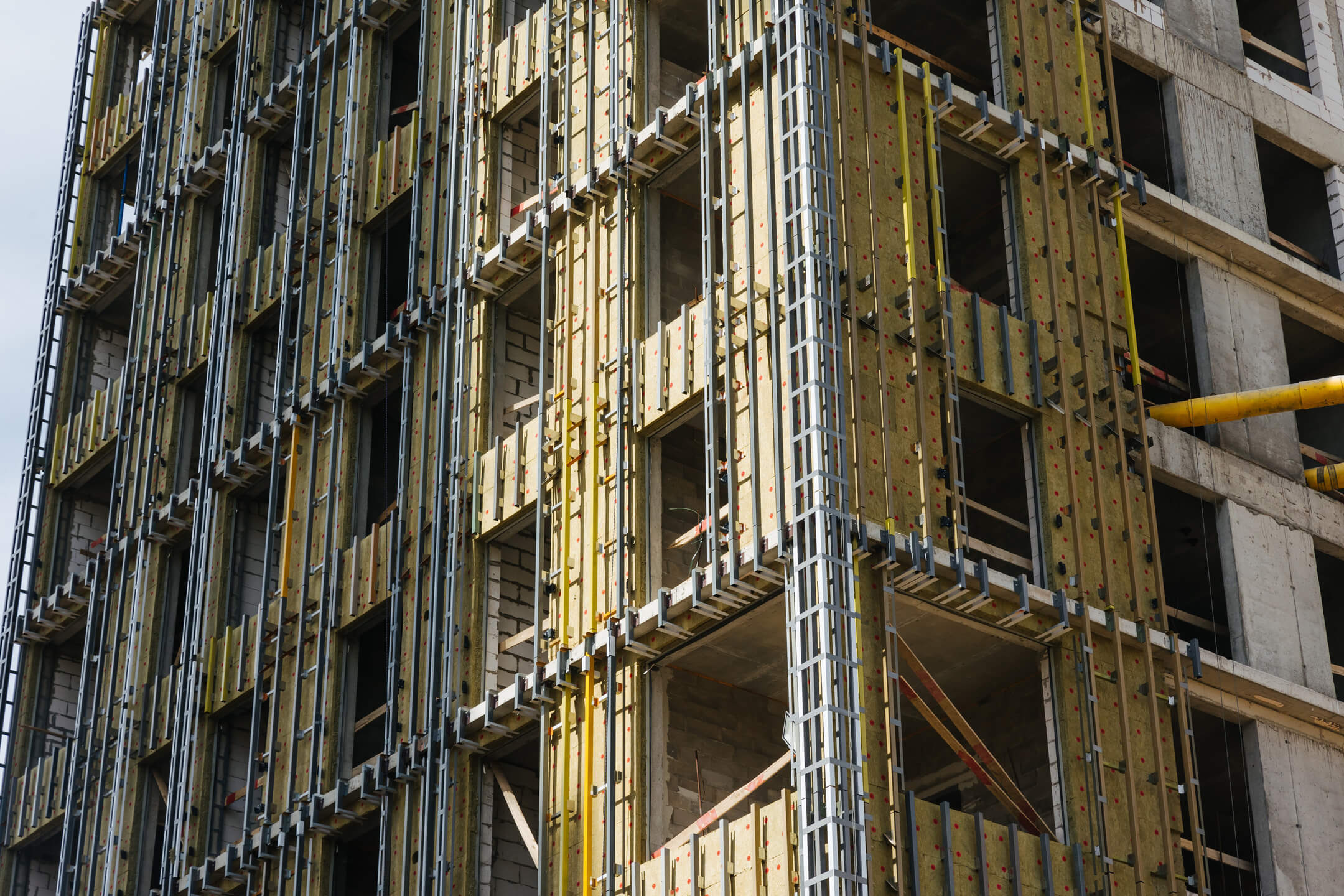 Этап 1.1 (корпус 1): подготовка к кровельным работам. Продолжаются каменные работы на 10-20 этажах, монтируются лестничные марши на 21 этаже. В части внутренних инженерных систем ведется устройство отопления, вентиляции, ведутся электромонтажные работы. Фасад: монтаж противопожарной отсечки, минераловатного утеплителя, подсистемы.