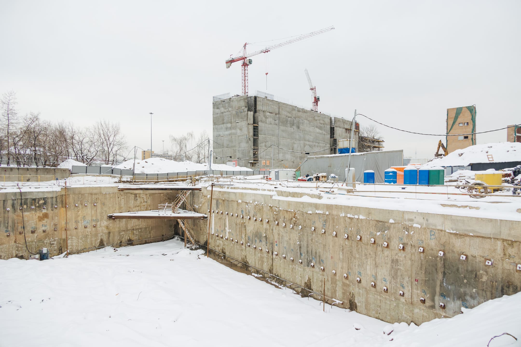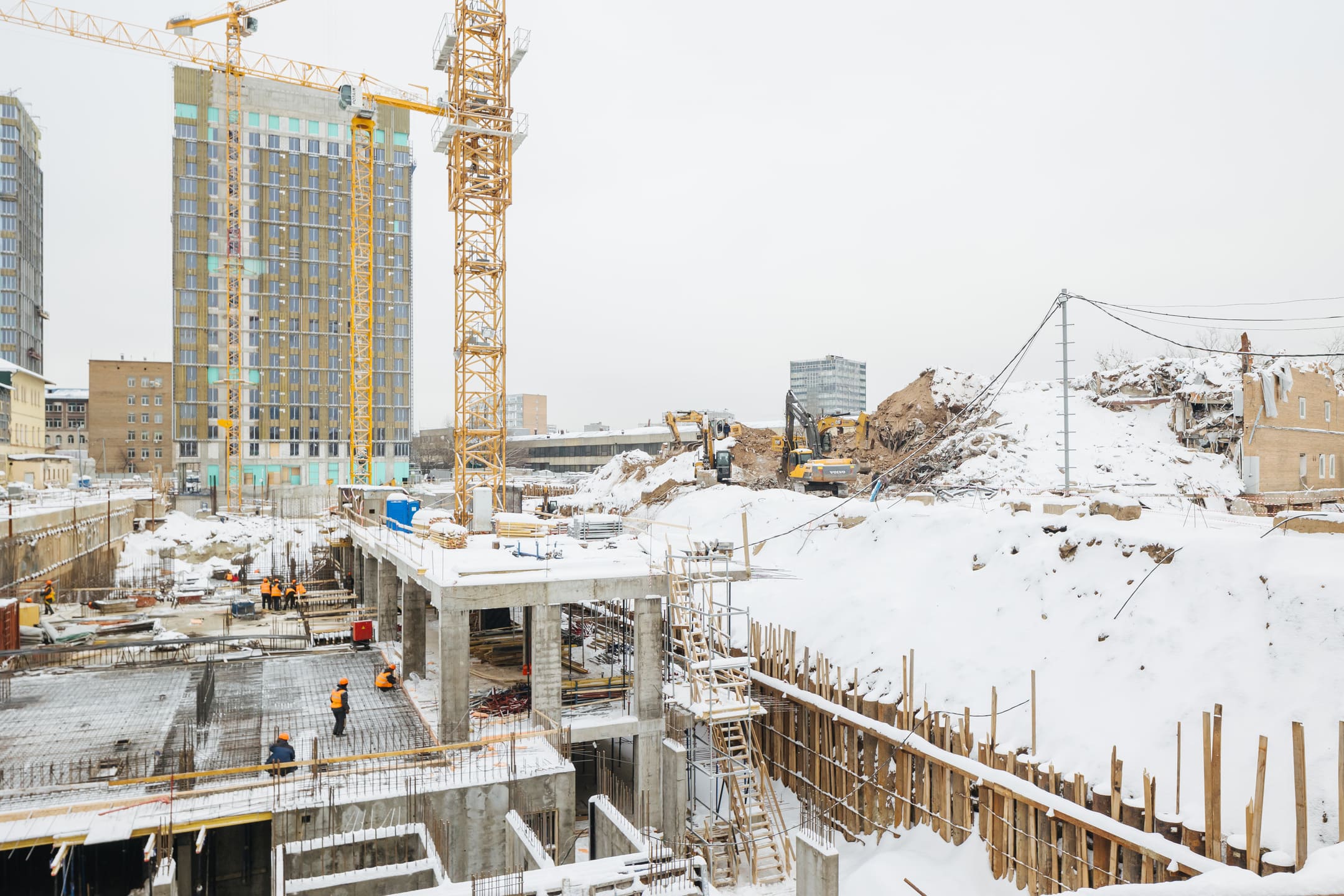 - Бетонирование вертикальных конструкций паркинга −1этажа.