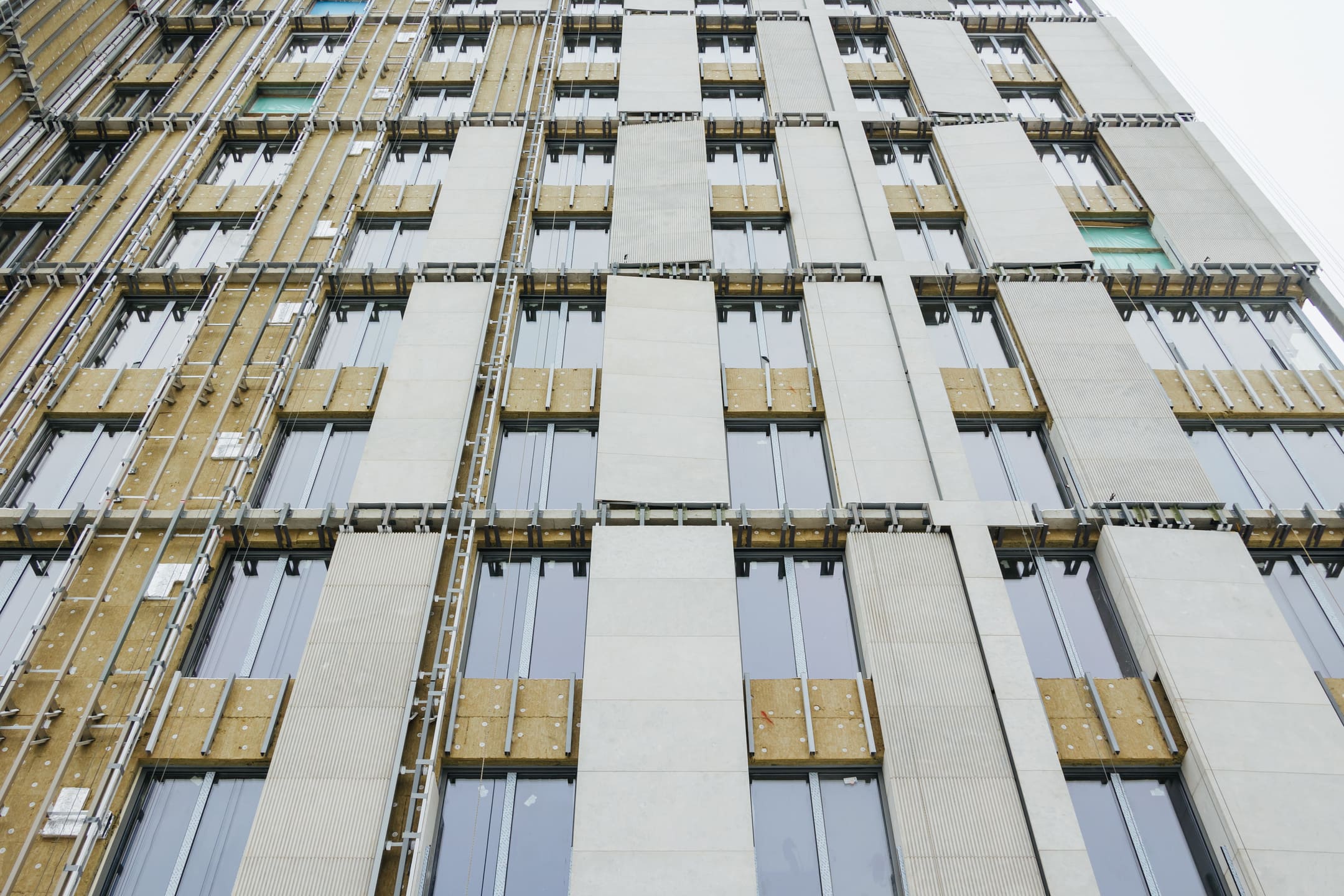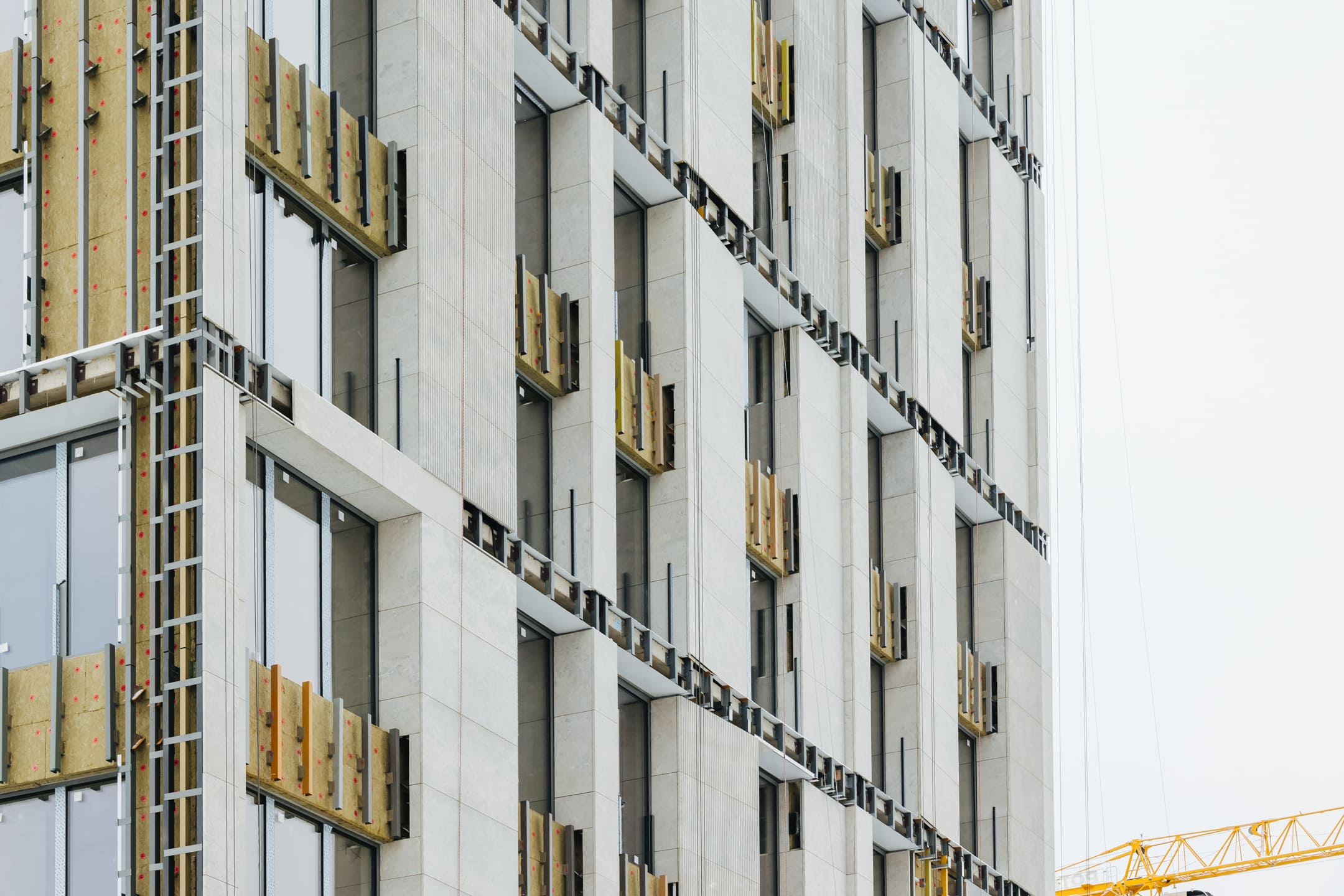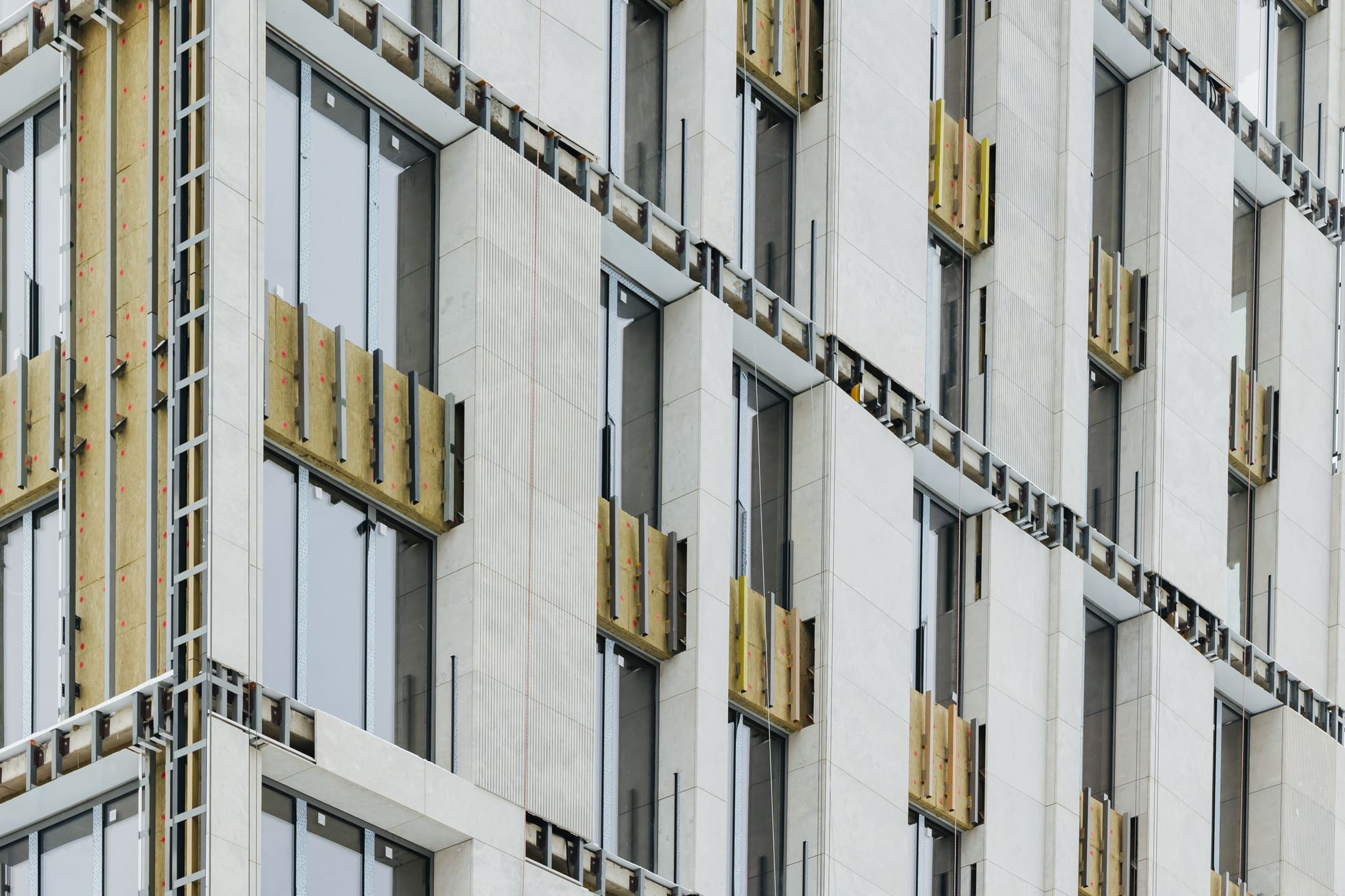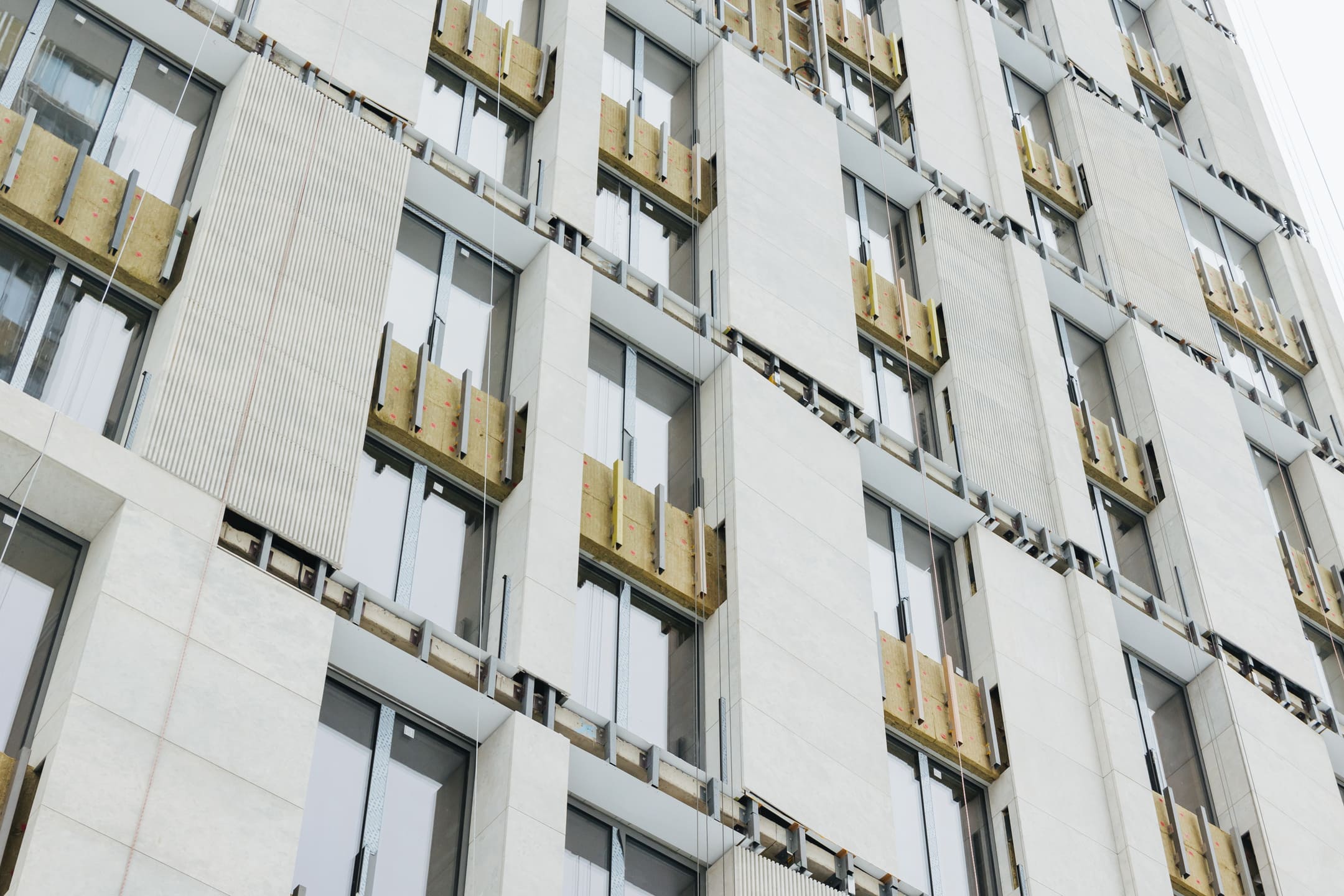 - Фасад. Монтаж минераловатного утеплителя. Монтаж подсистемы. Монтаж облицовки из натурального камня. Монтаж окон типовых этажей.