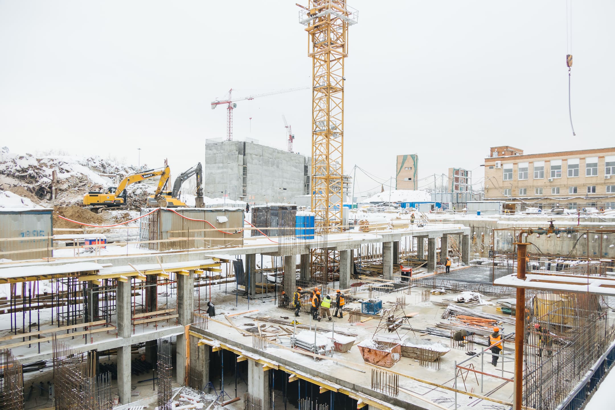 - Бетонирование плиты перекрытия паркинга −1 этажа