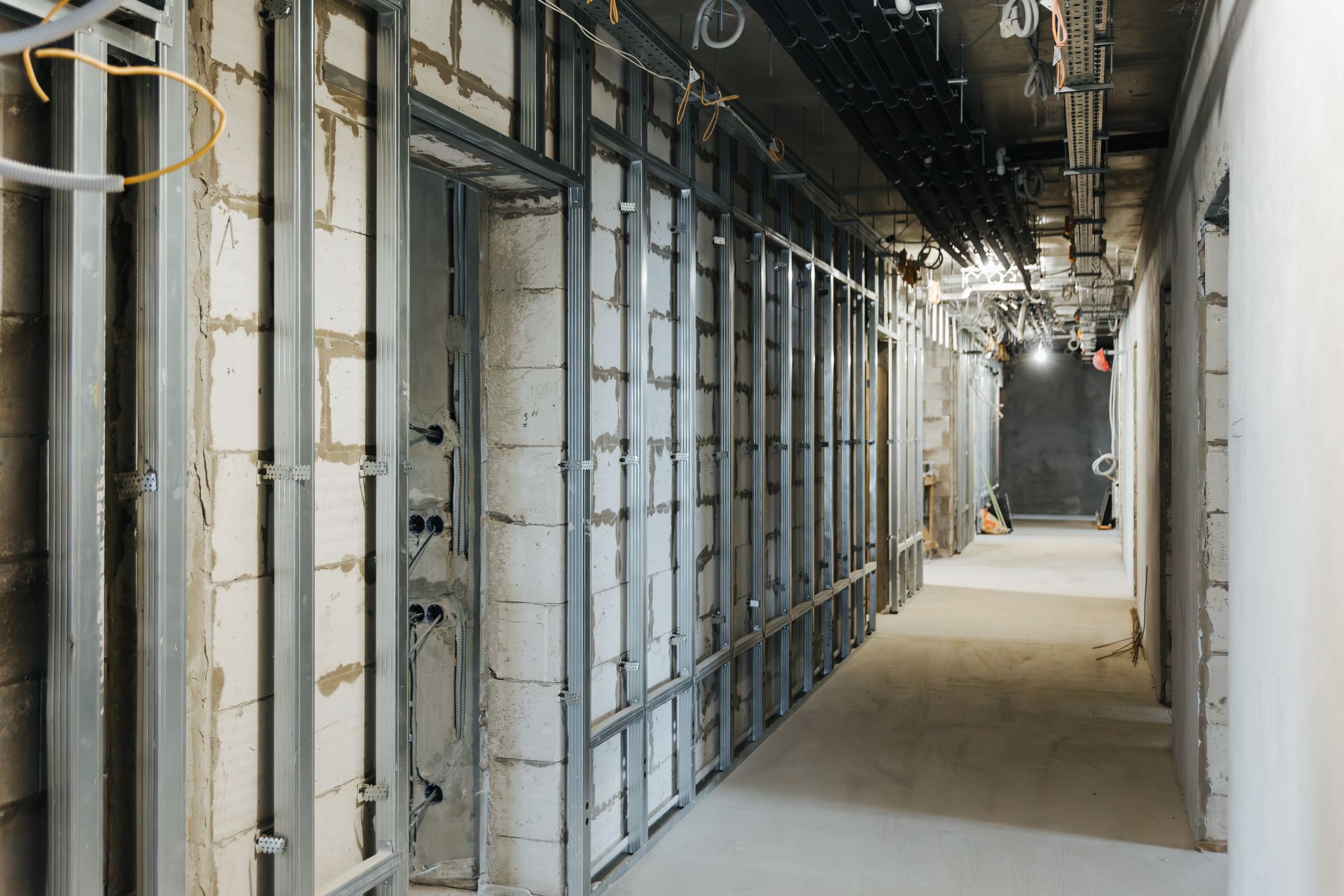 - ВИС. Ведутся работы по отоплению, вентиляции, противопожарному водопроводу. Ведутся электромонтажные работы.