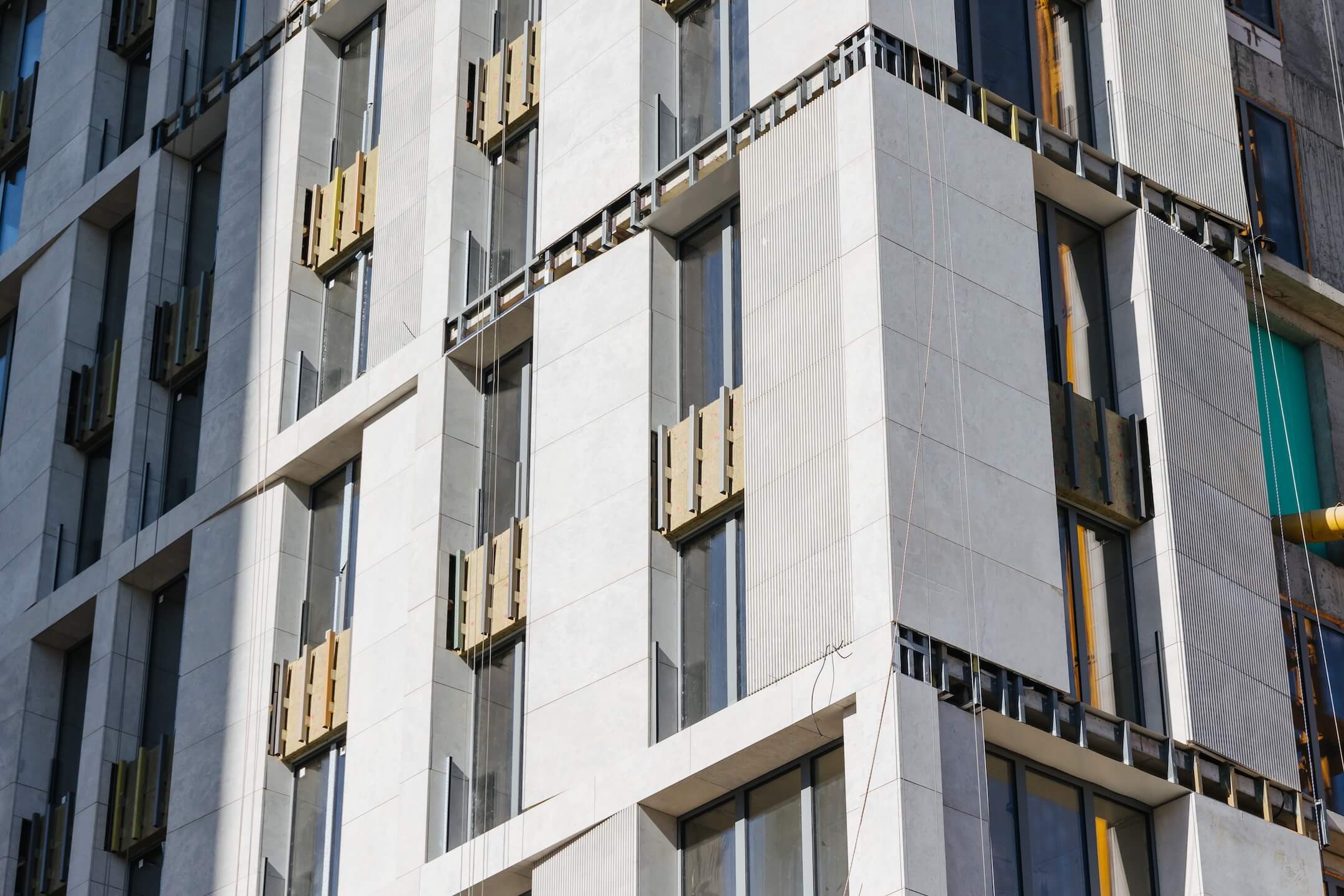 - Фасад. Монтаж минераловатного утеплителя. Монтаж подсистемы. Монтаж облицовки из натурального камня. Монтаж окон типовых этажей