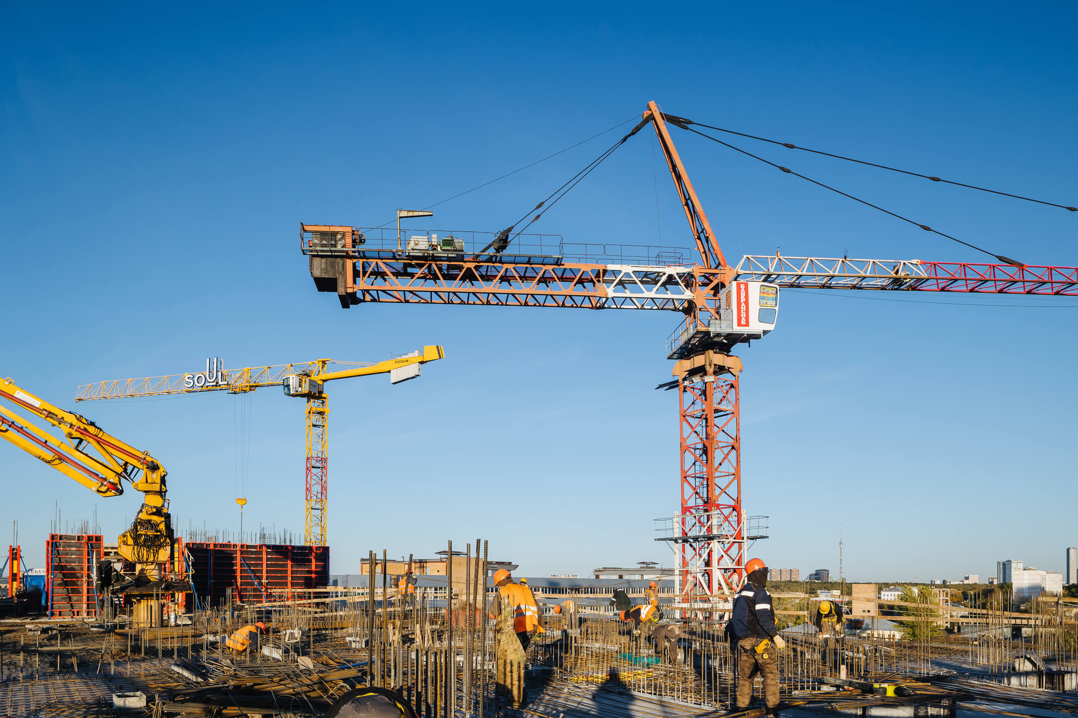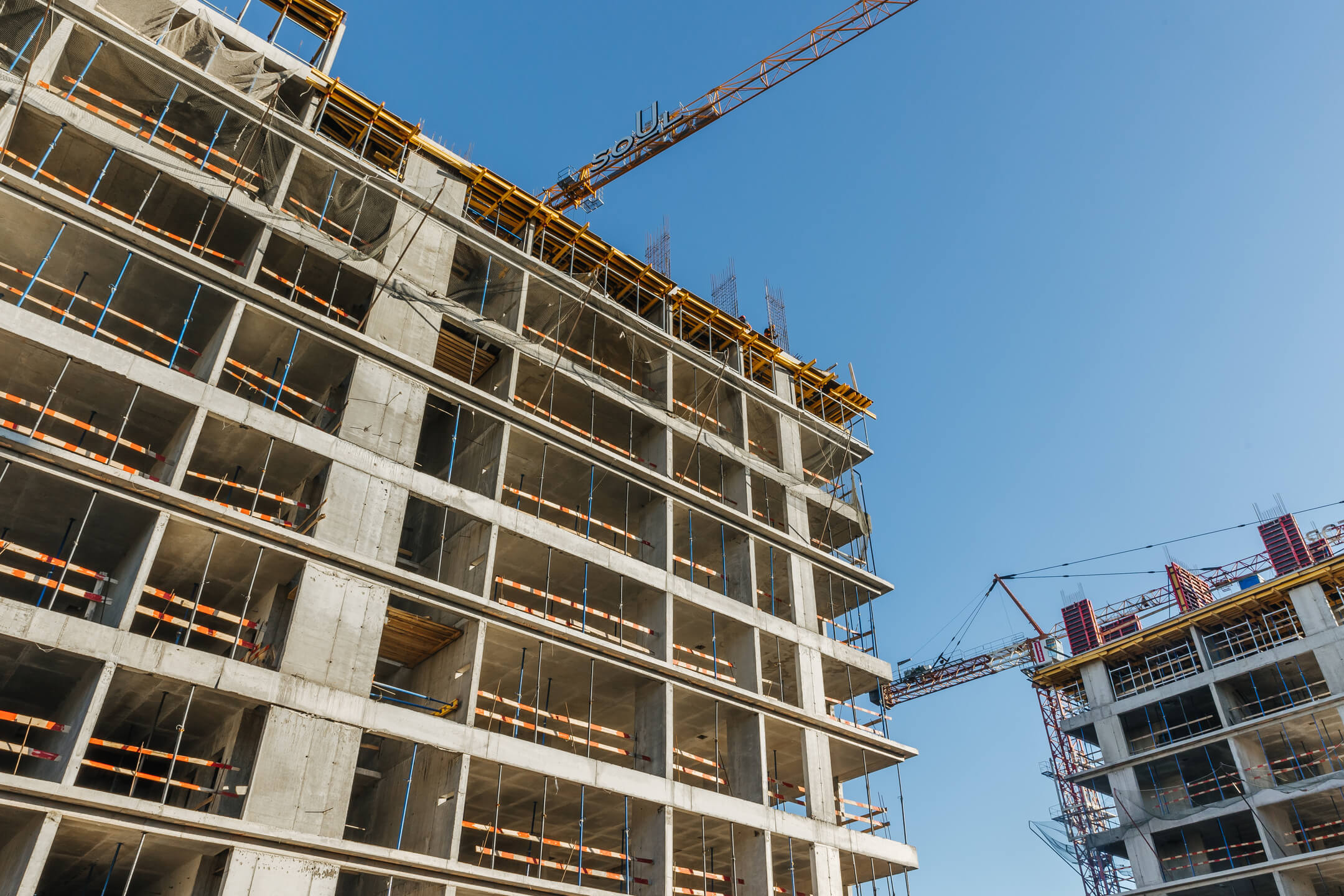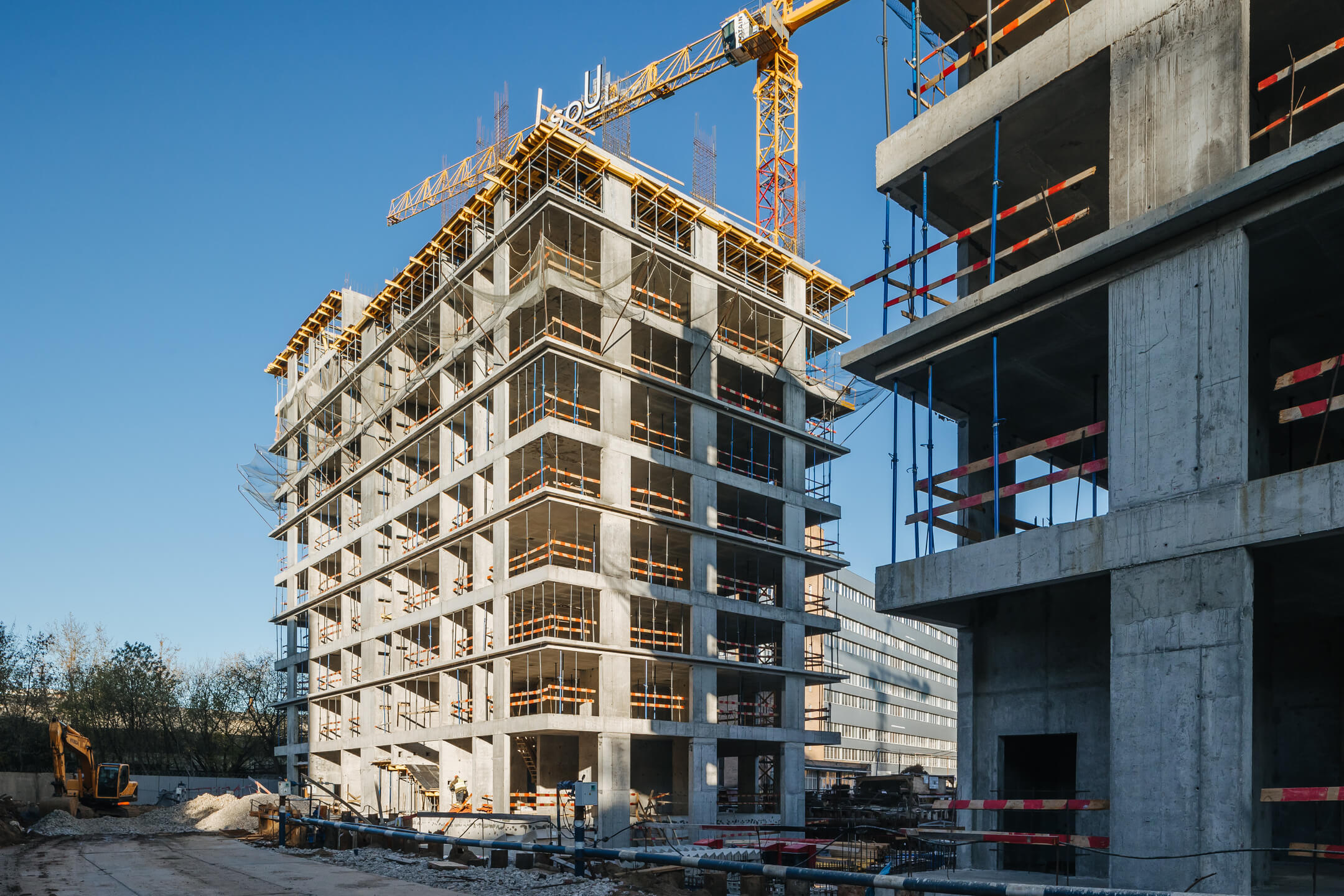 - Корпус 1: ведутся работы по армированию/бетонированию стен 9 этажей;