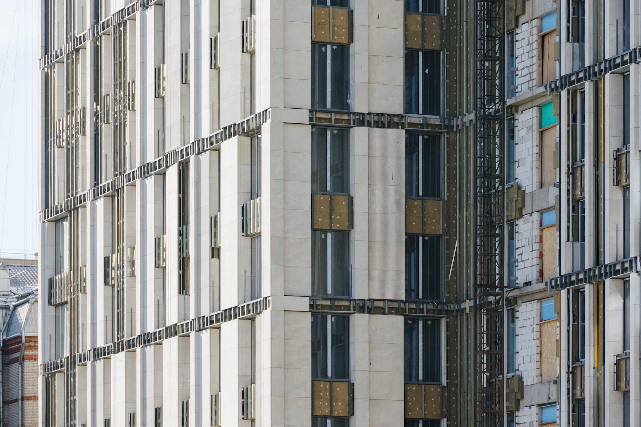 - Фасад. Монтаж минераловатного утеплителя. Монтаж подсистемы. Монтаж облицовки из натурального камня. Монтаж окон типовых этажей