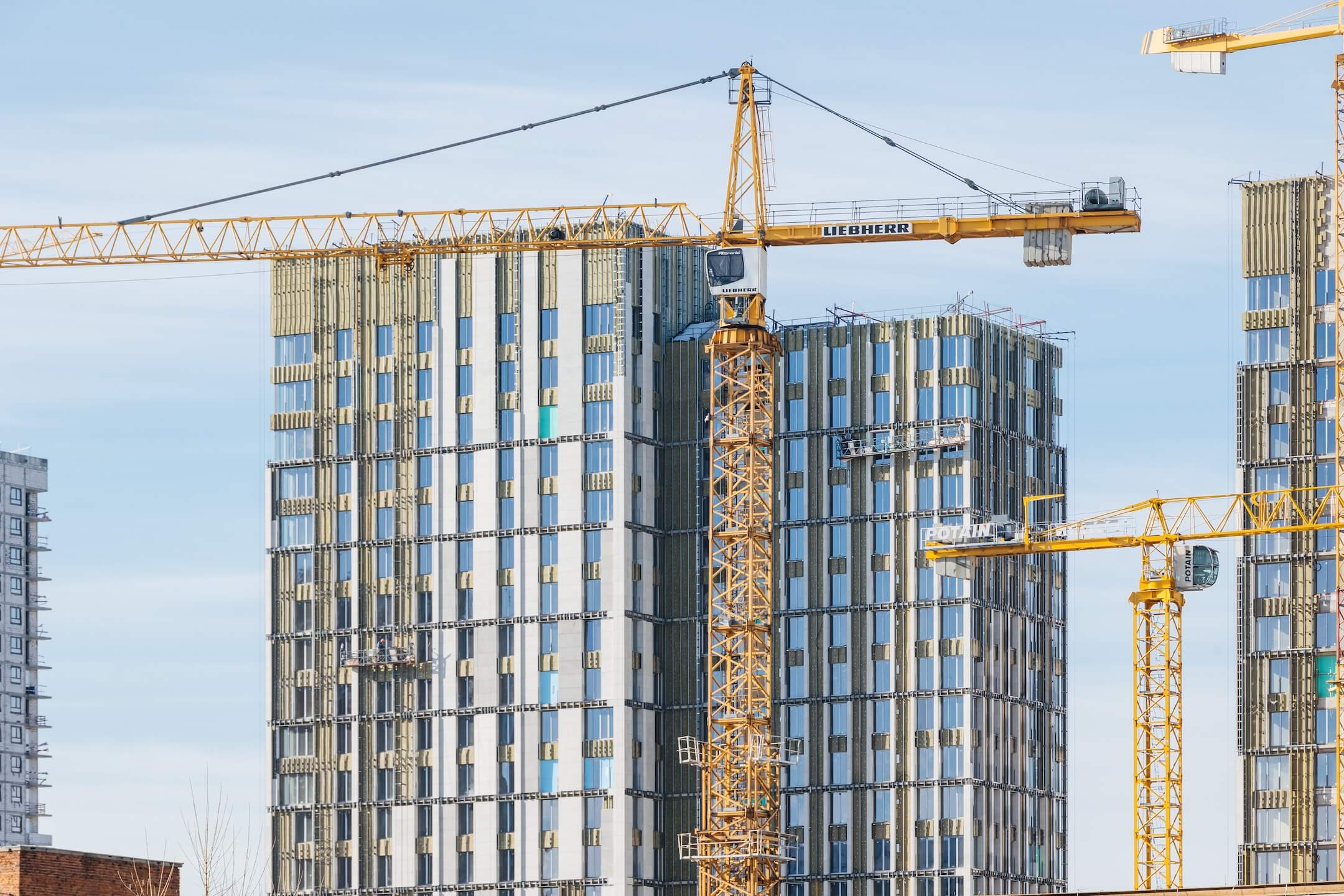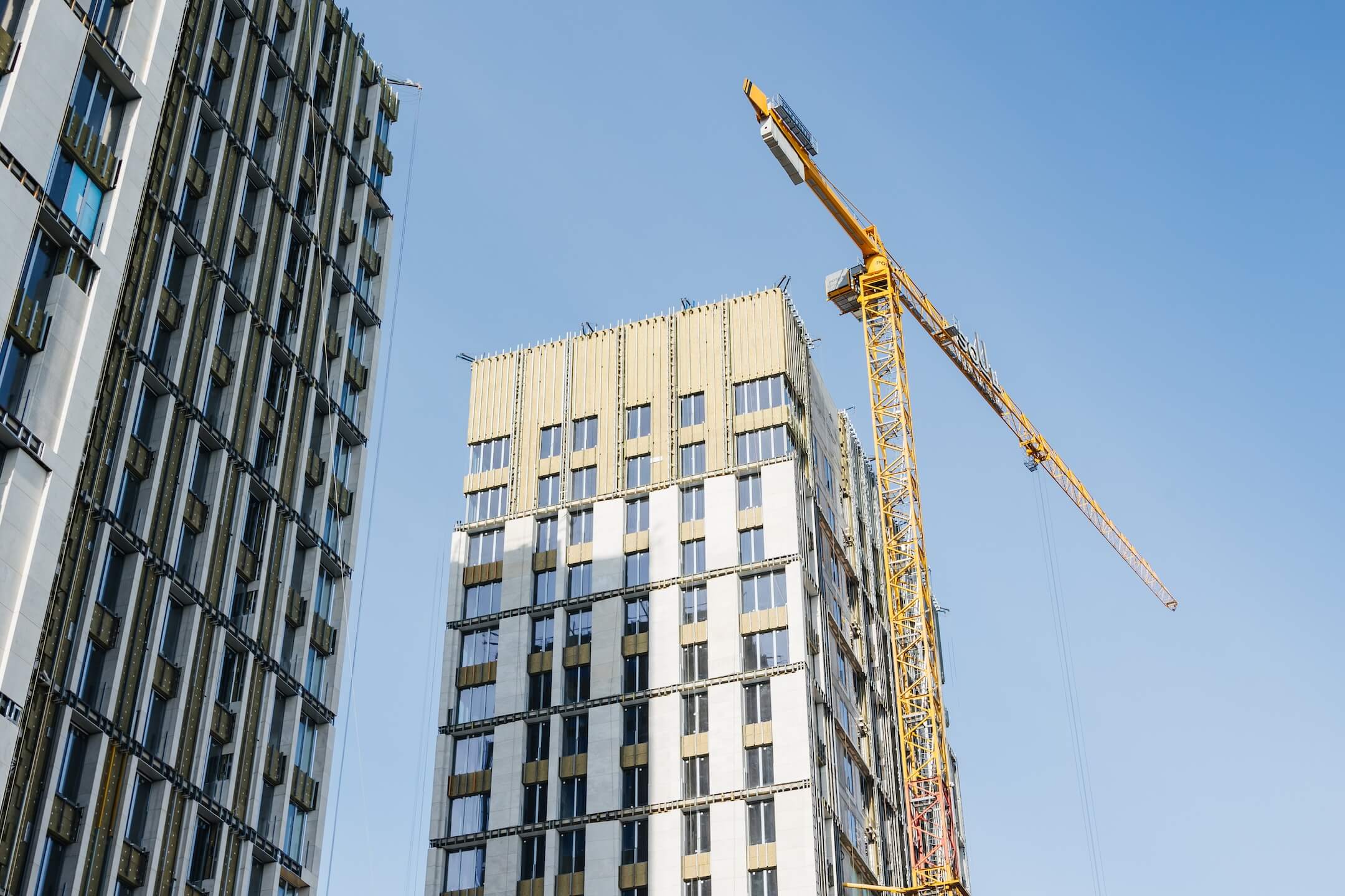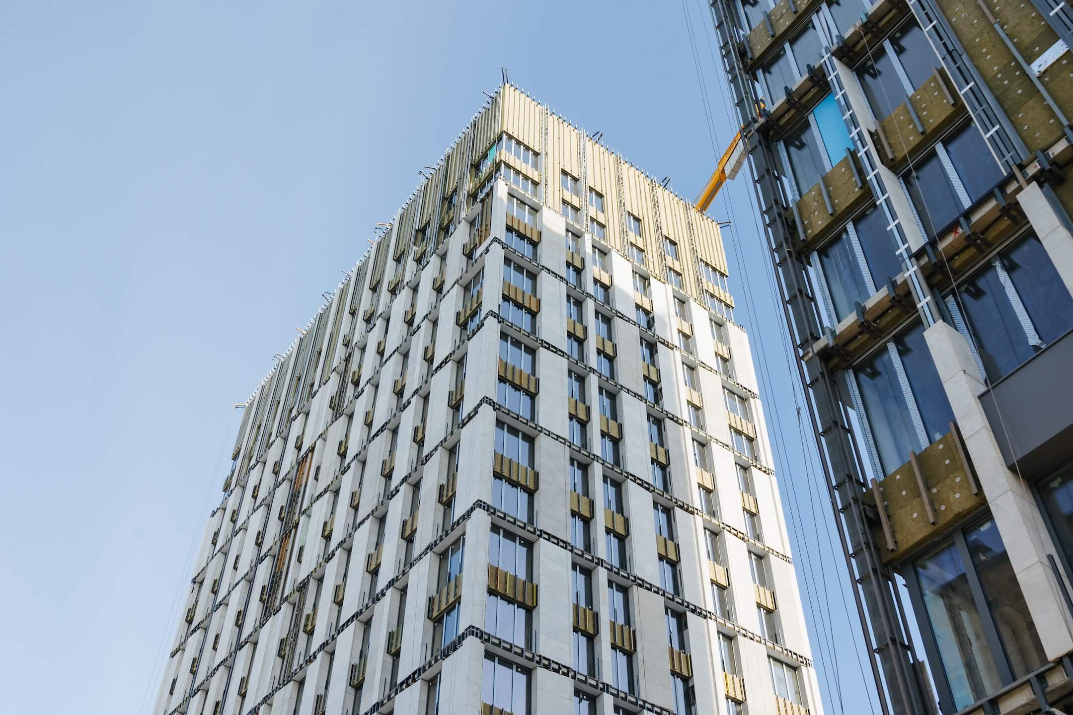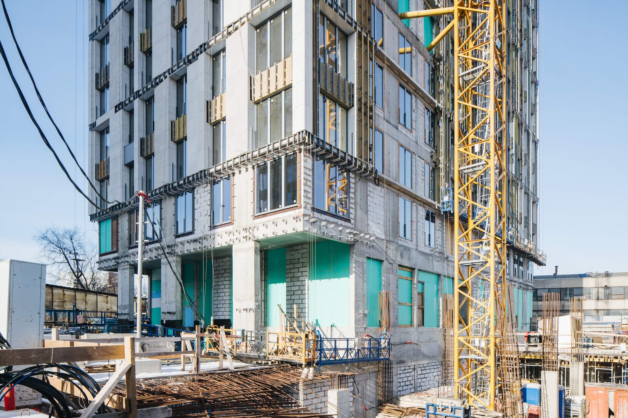 - Фасад. Монтаж минераловатного утеплителя. Монтаж подсистемы. Монтаж облицовки из натурального камня. Монтаж окон типовых этажей.