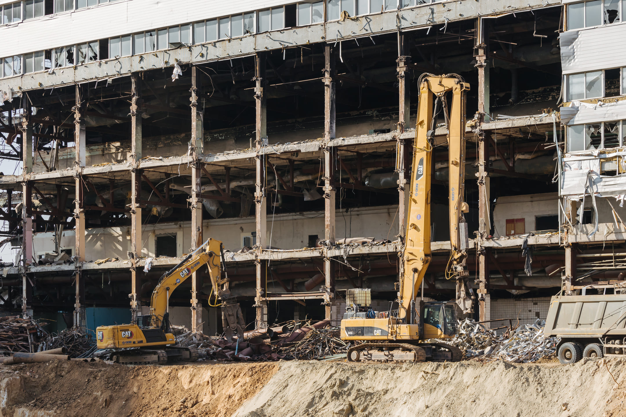 Этап 1.2: устройство свайного поля, шпунтового ограждения, распорной системы, грунтовых анкеров, водопонижения. Разработка котлована, снос зданий и сооружений. Устройство бетонной подготовки фундаментной плиты.