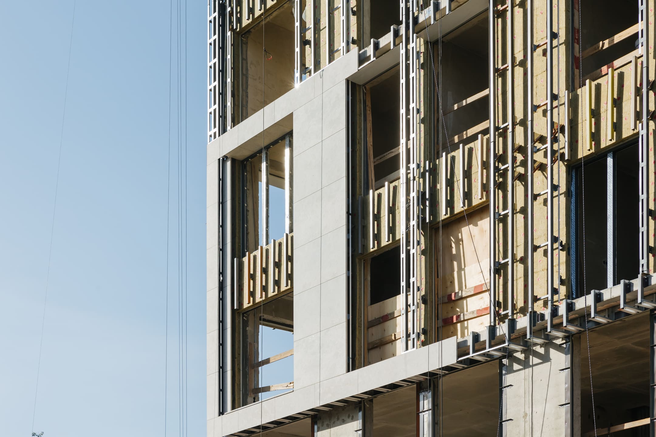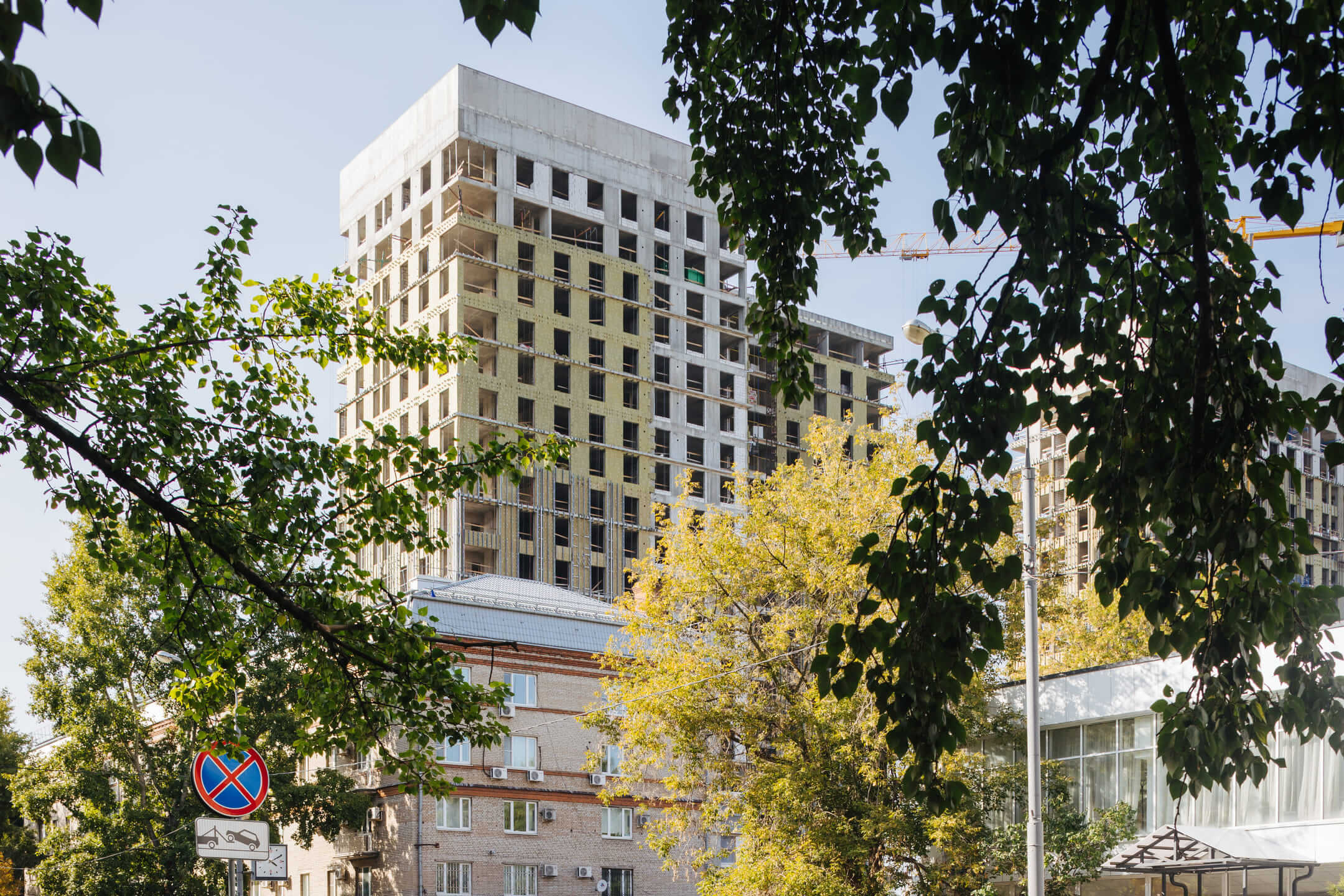 Этап 1.1 (корпус 2): Монтаж лестничных маршей 17 этажа. Ведутся каменные работы на 15-19 этажах. Ведутся отделочные работы на 3- 8 этажах. Продолжаются работы по устройству отопления, вентиляции, противопожарного водопровода в рамках внутренних инженерных систем, ведутся электромонтажные работы. Фасад: монтаж противопожарной отсечки, минераловатного утеплителя, подсистемы. Монтаж облицовки из натурального камня. Монтаж окон типовых этажей.