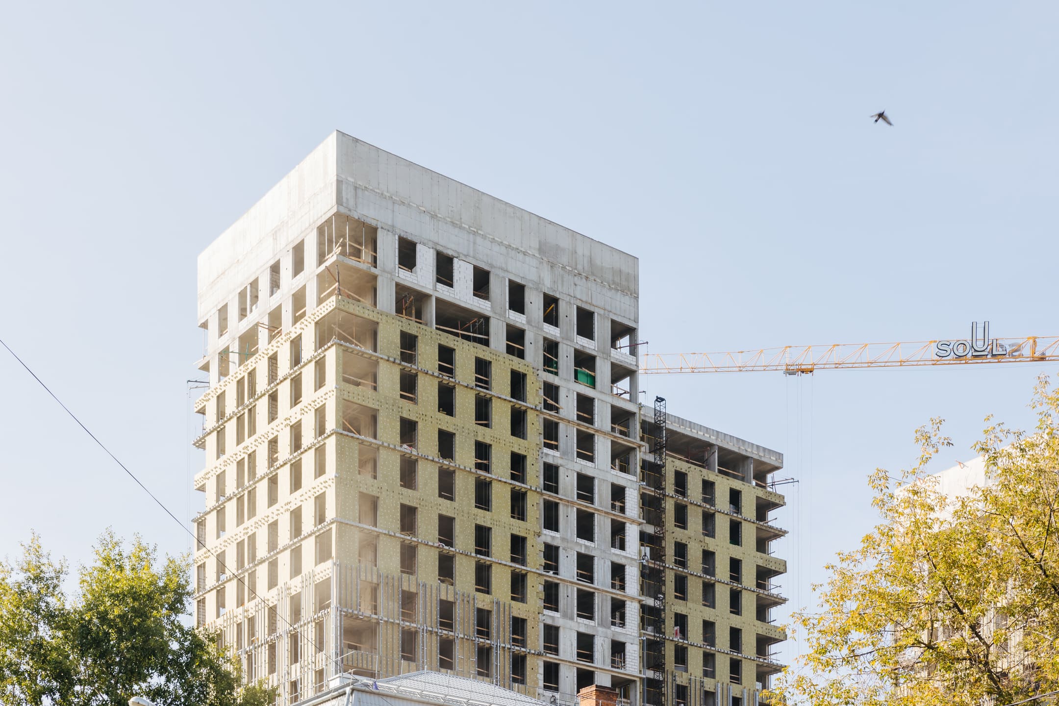 Этап 1.1 (корпус 1): Ведутся кровельные работы. Монолитные работы завершены. Продолжаются каменные работы на 12-20 этажах. Ведутся отделочные работы на 3-5 этаже. В части внутренних инженерных систем ведется устройство отопления, вентиляции, ведутся электромонтажные работы. Фасад: монтаж противопожарной отсечки, минераловатного утеплителя, подсистемы. Монтаж облицовки из натурального камня. Монтаж окон типовых этажей.