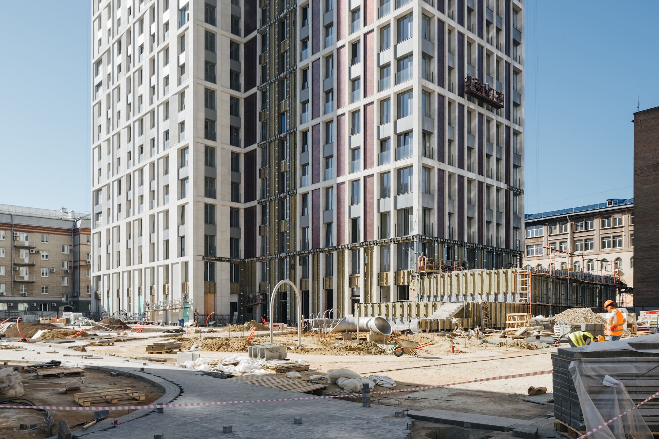 - Ведутся черновые отделочные работы на 1-20 этажах
