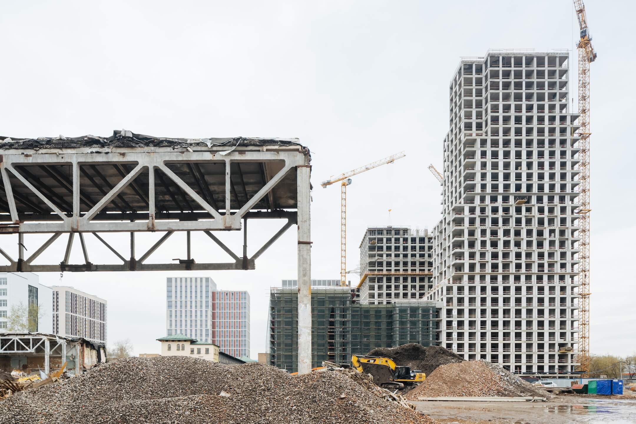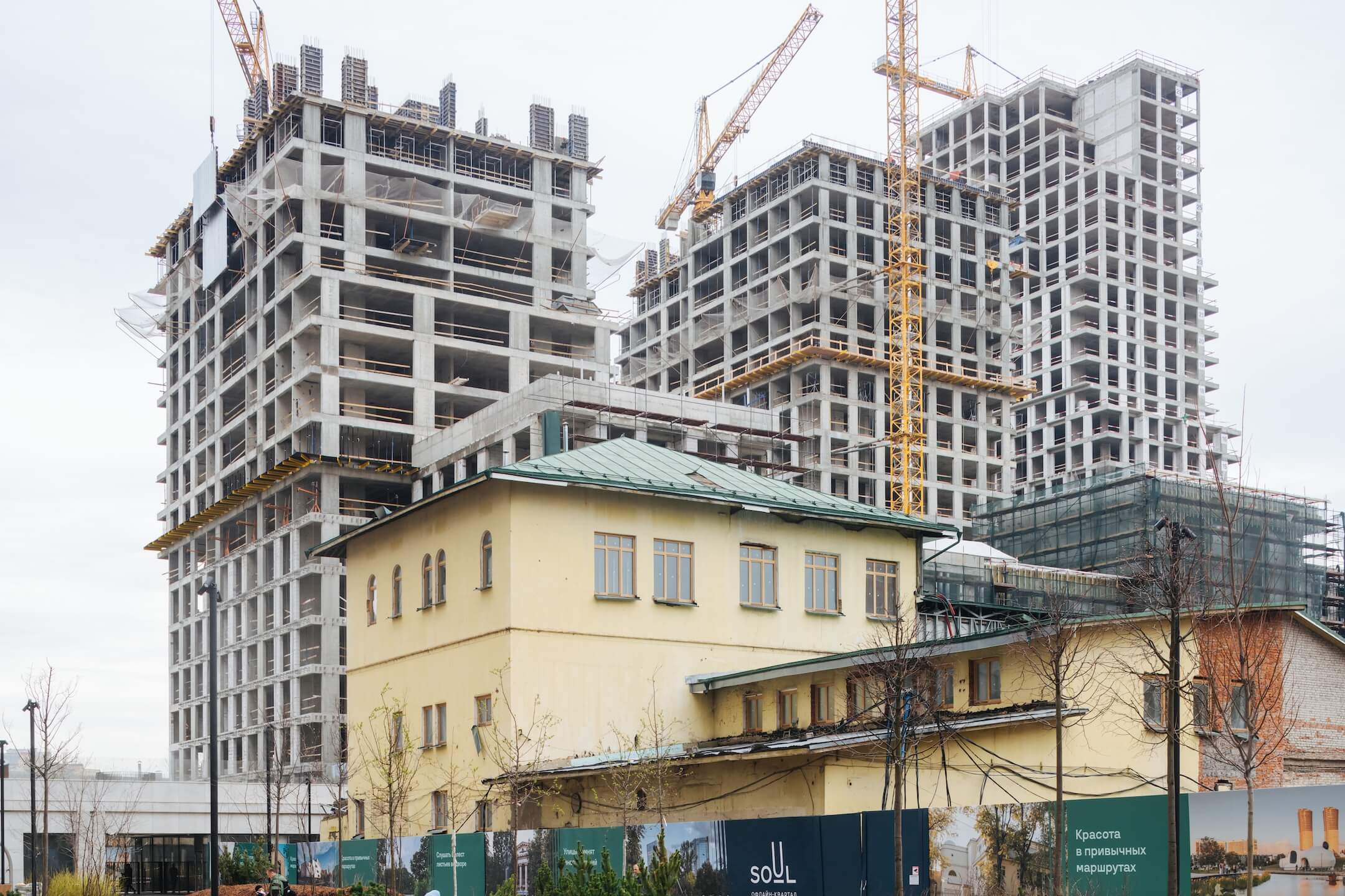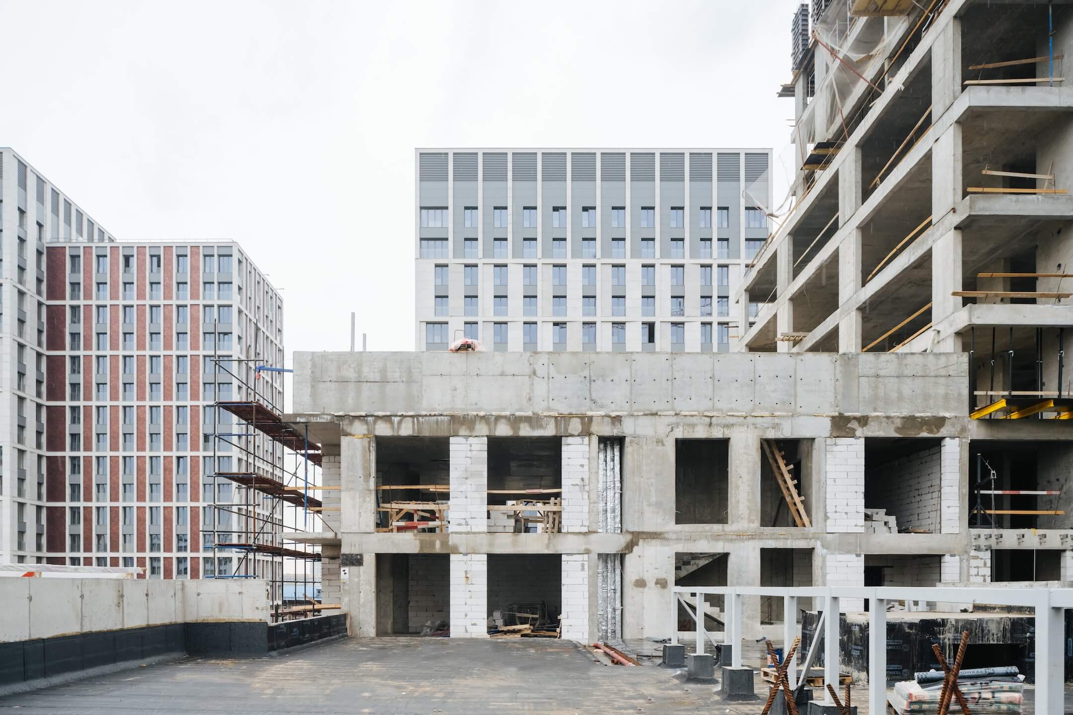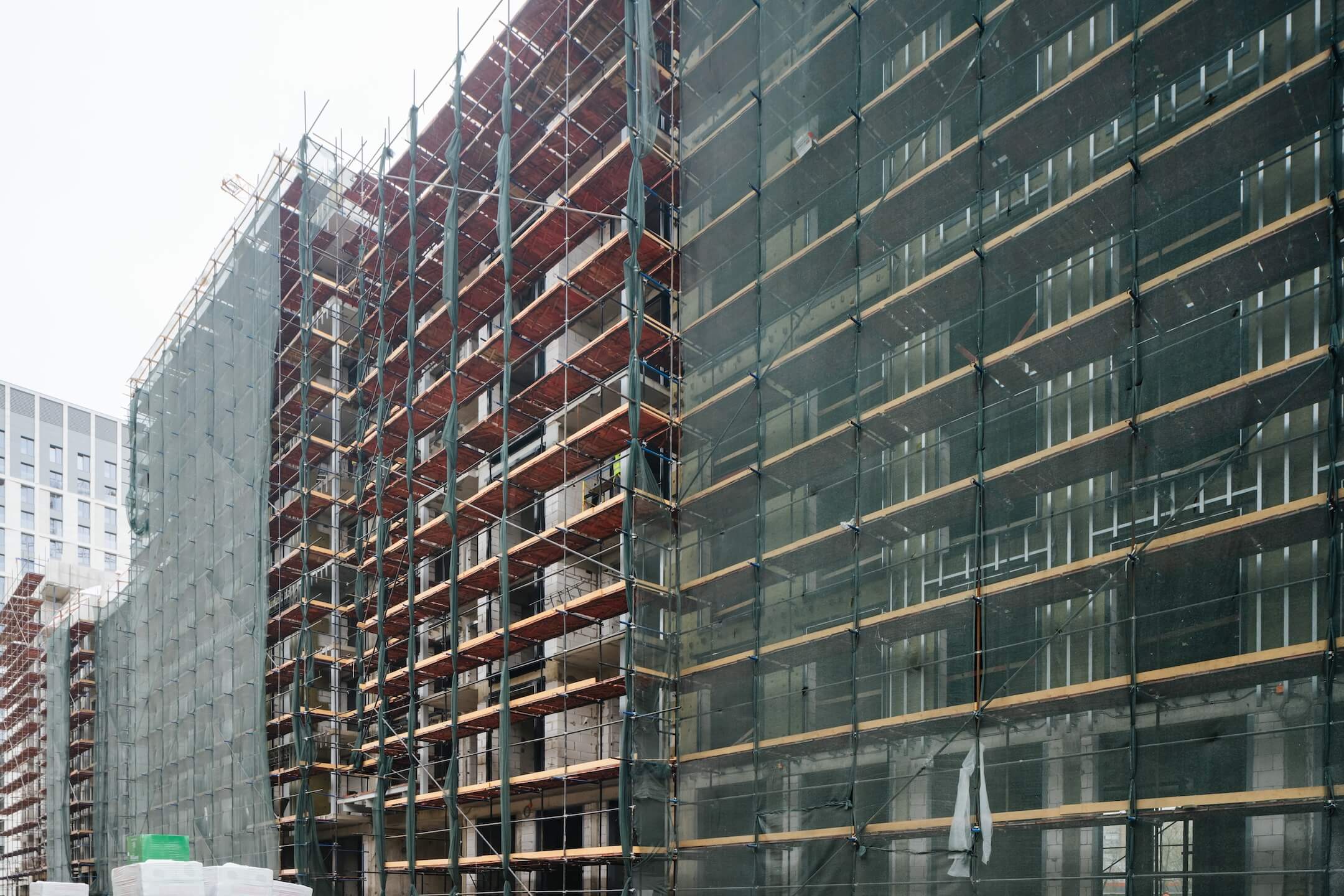 - Ведутся работы по монтажу строительных лесов для устройства вентилируемого фасада.