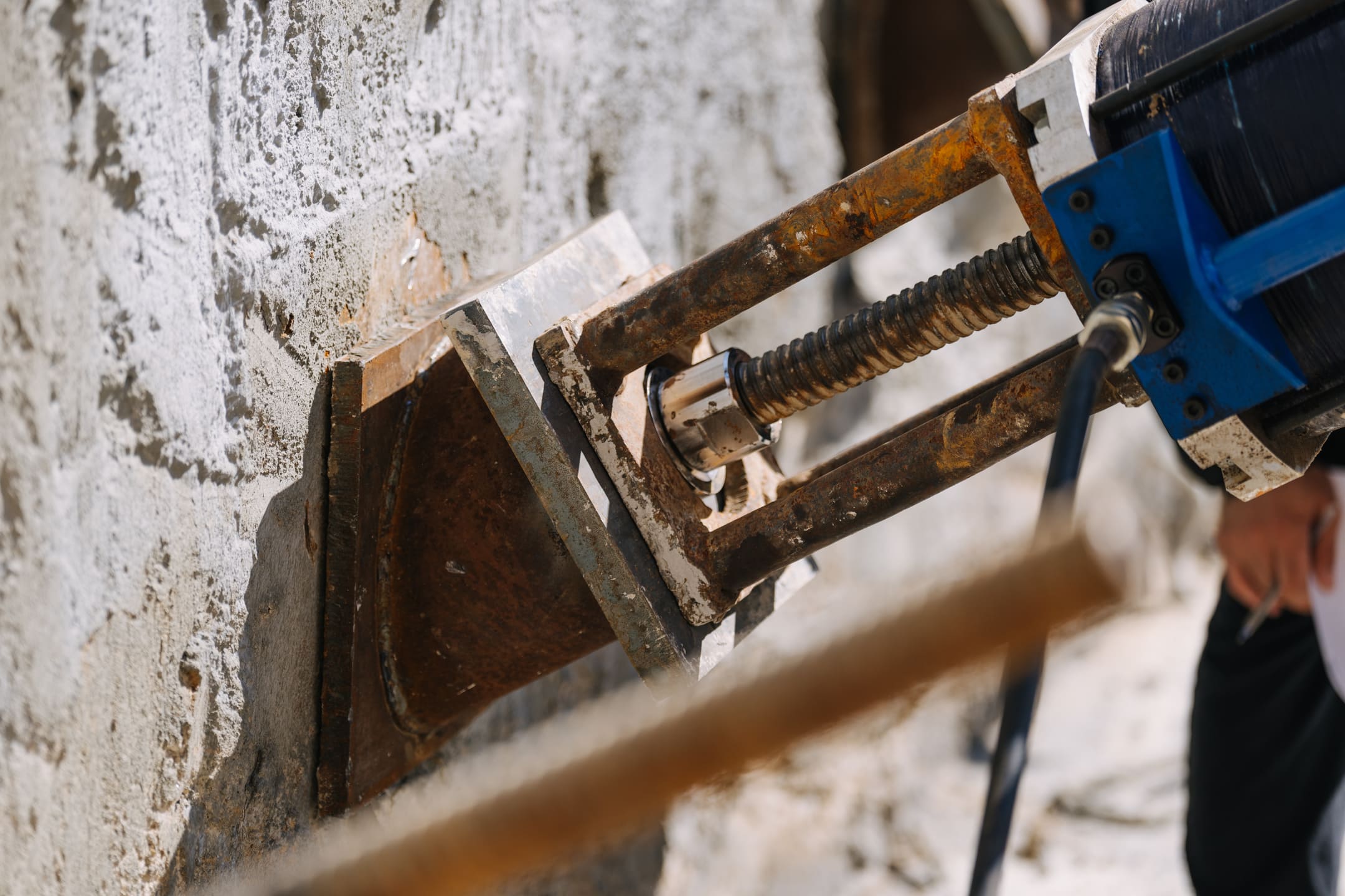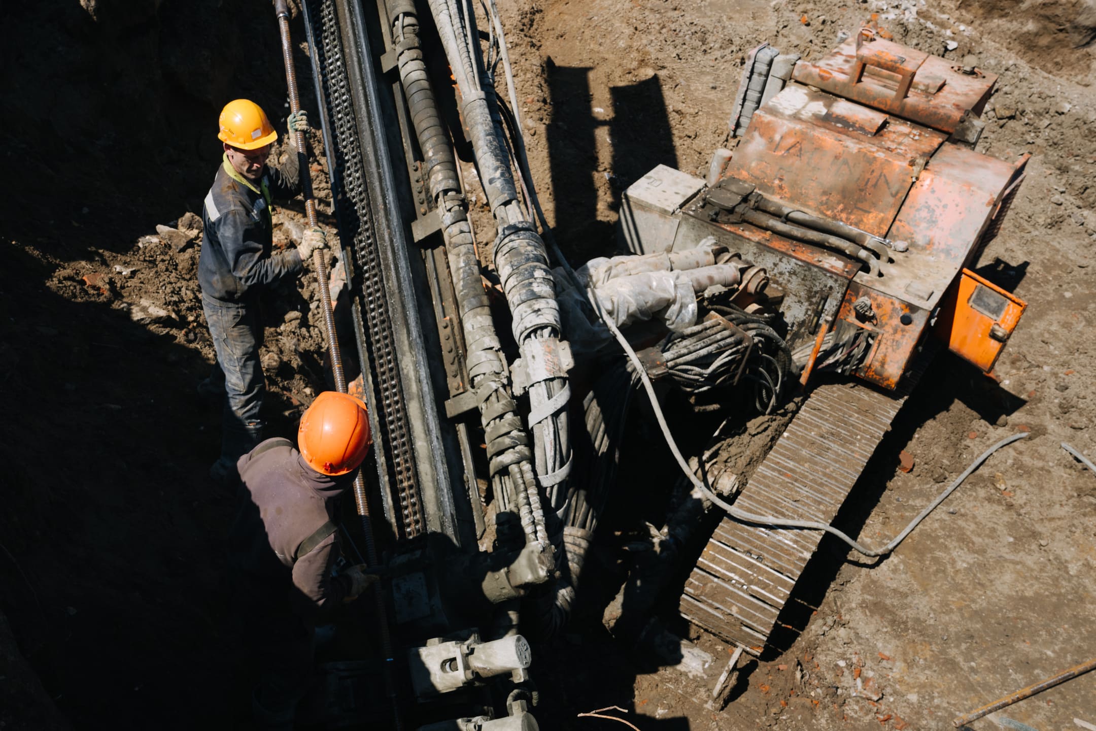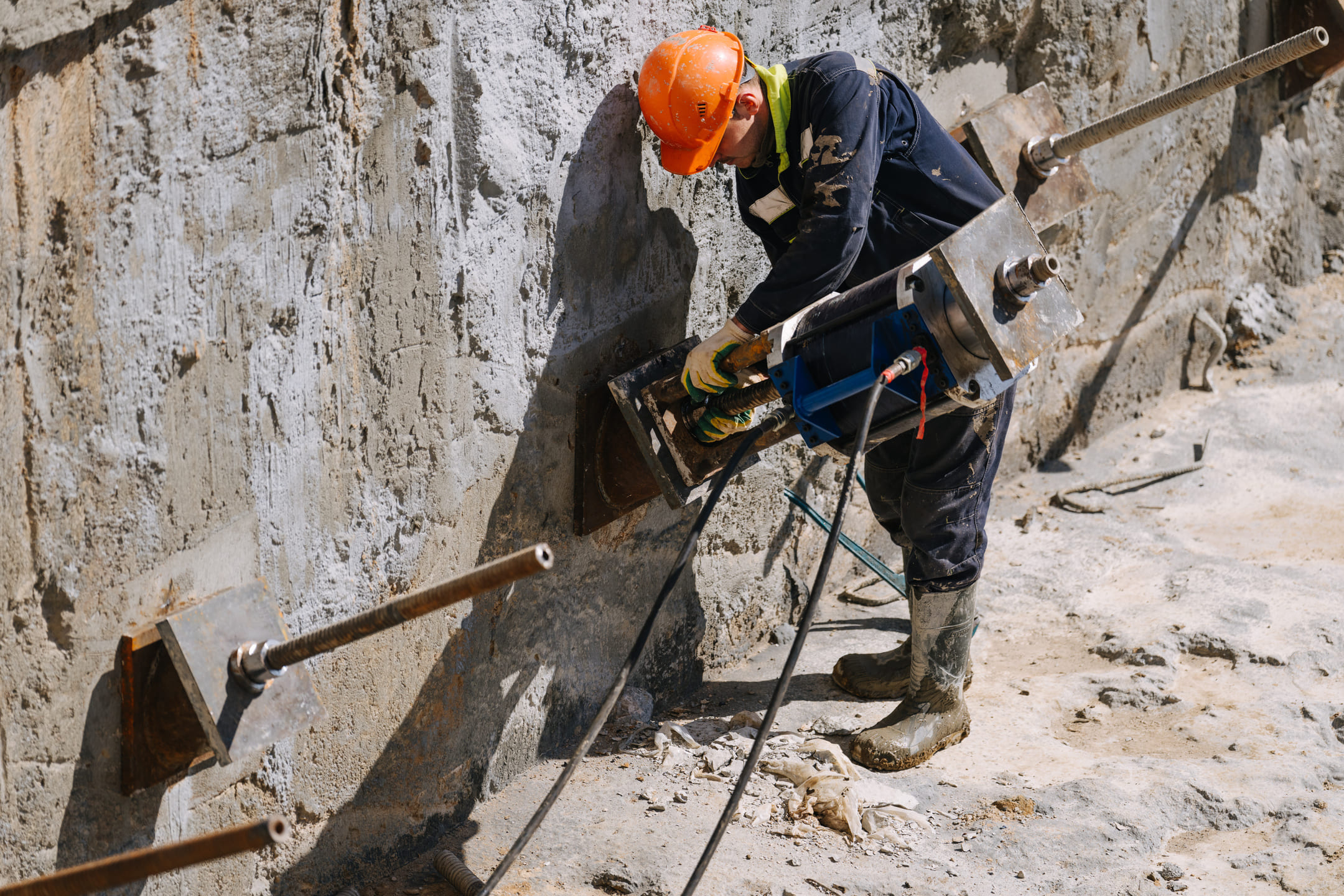 Этап 1.2: устройство стены в грунте и обвязочной балки, распорной системы и грунтовых анкеров, водопонижения. Разработка котлована, снос зданий и сооружений.