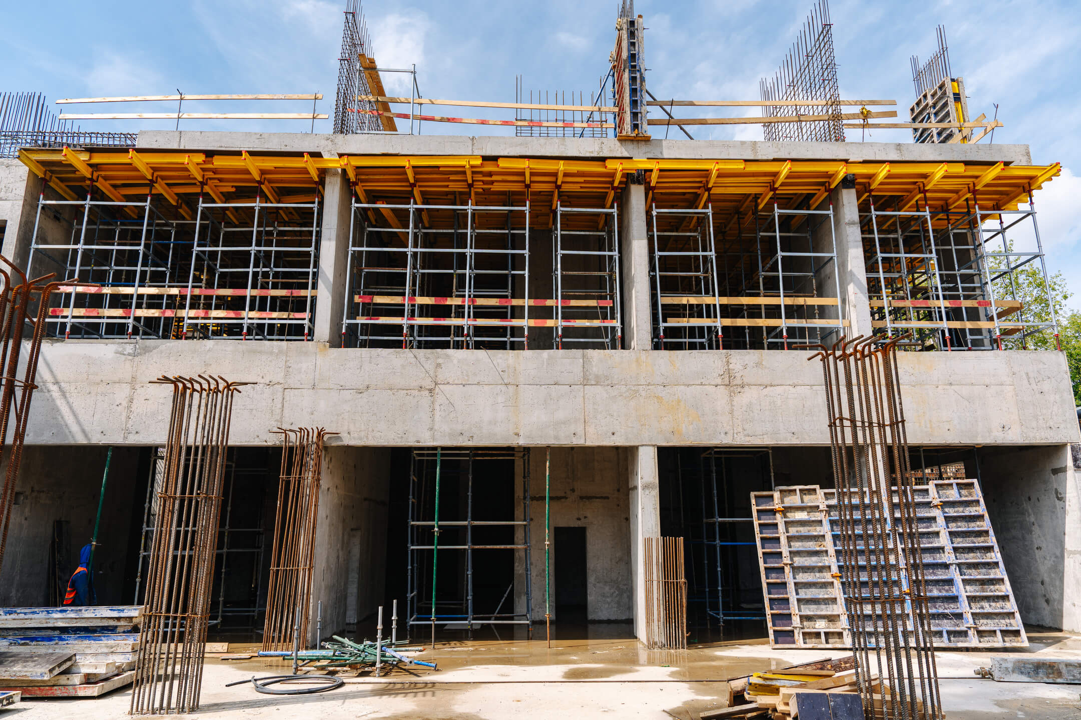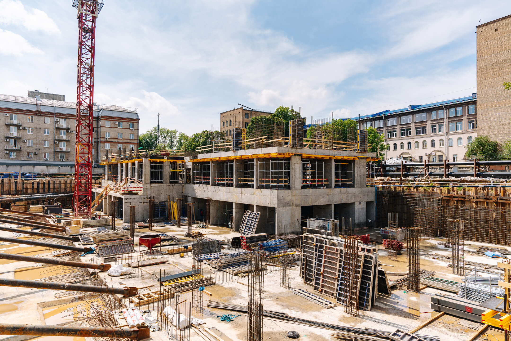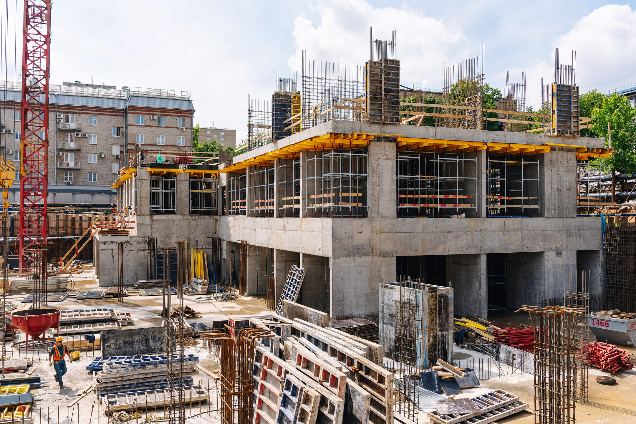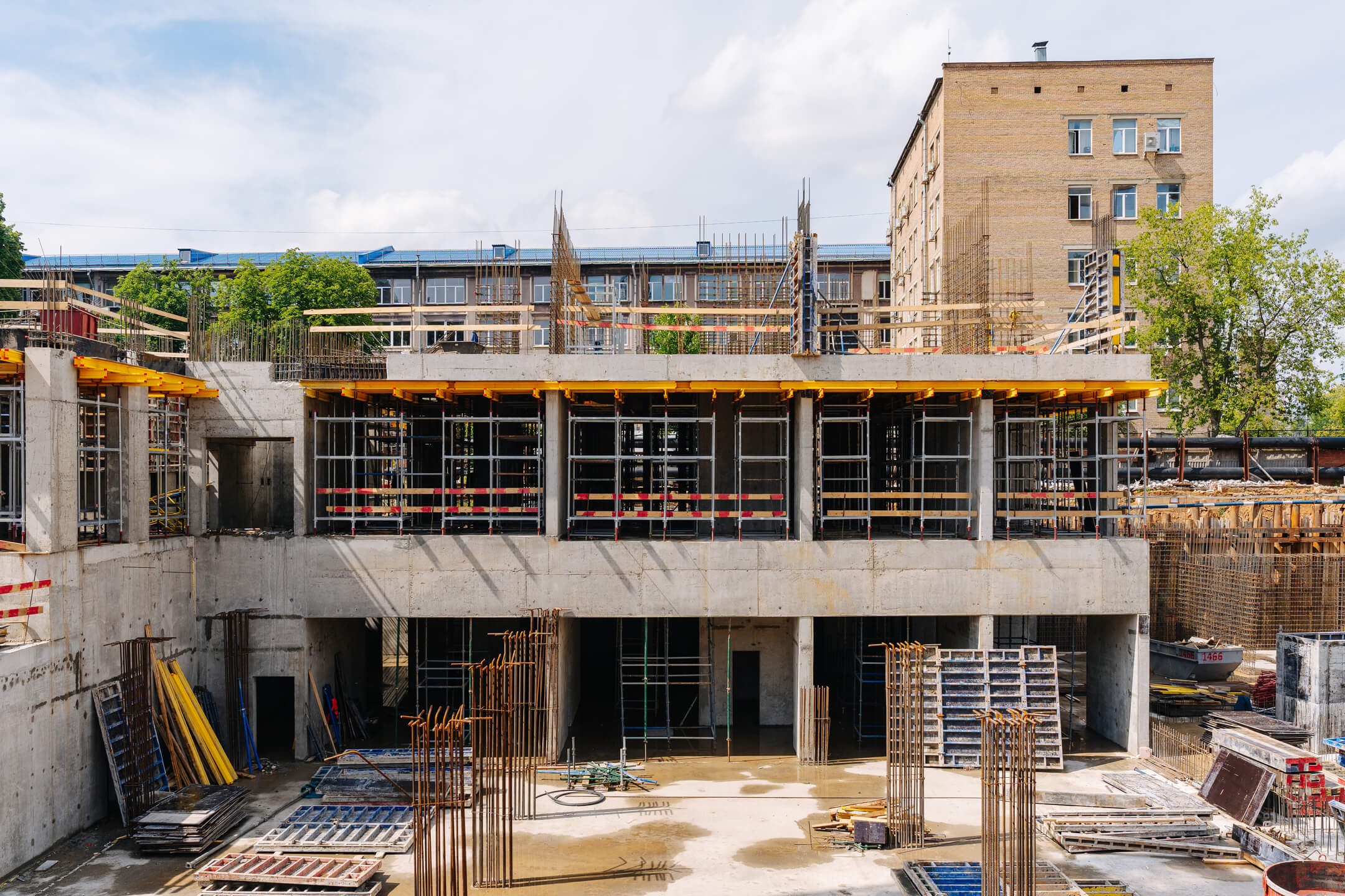 - Корпус 1: завершены работы по бетонированию стен подземного этажа и 1 этажа. Ведутся работы по армированию/бетонированию стен 2 этажа.