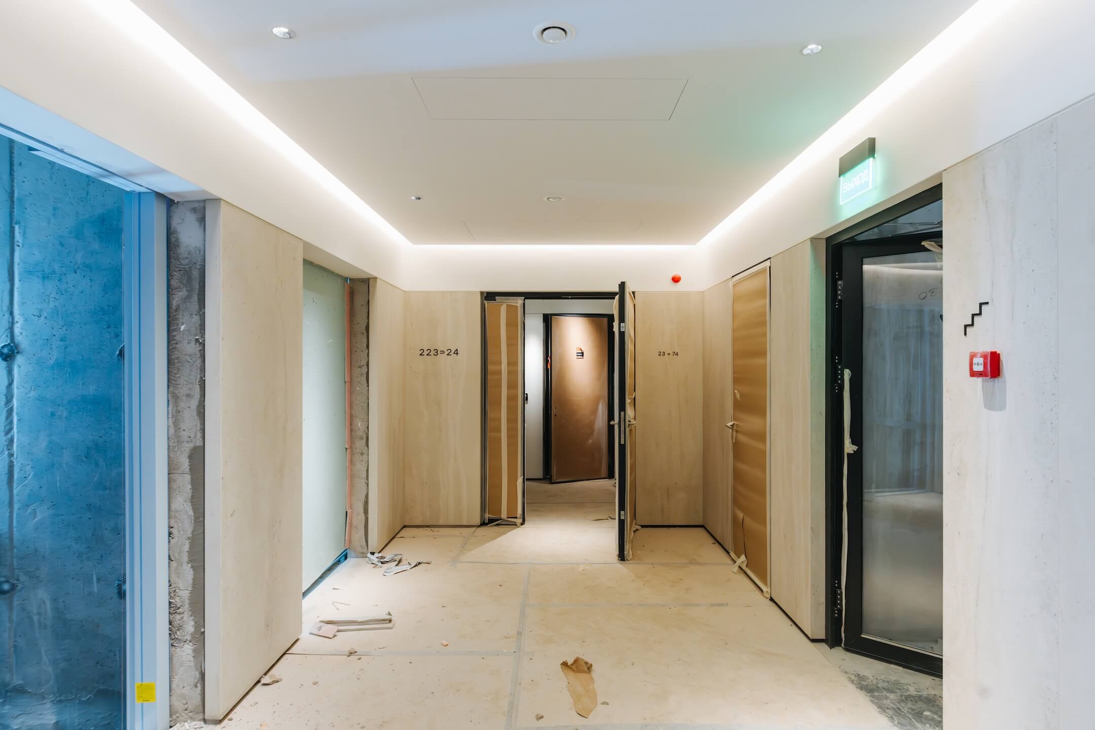- Ведутся черновые и чистовые отделочные работы в лобби