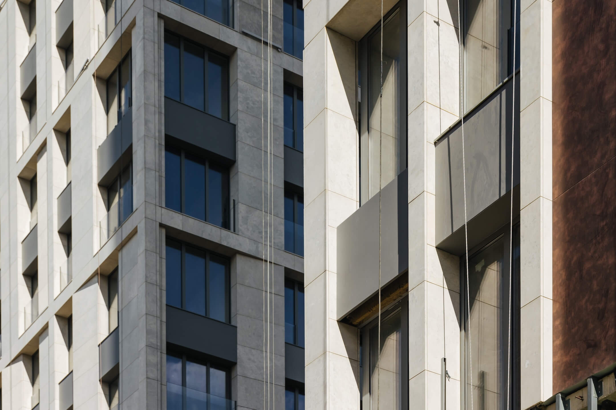 - Монтаж облицовки первых этажей из натурального камня