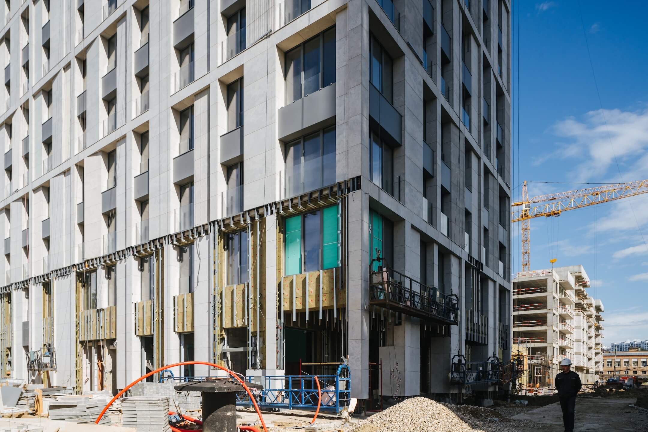 - Ведутся черновые отделочные работы на 1-20 этажах