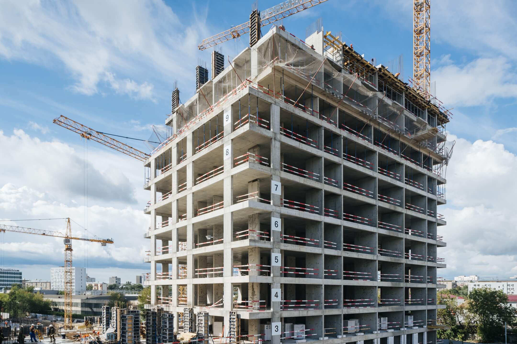 - Выполняются работы по бетонированию конструкций 12-13 этажа