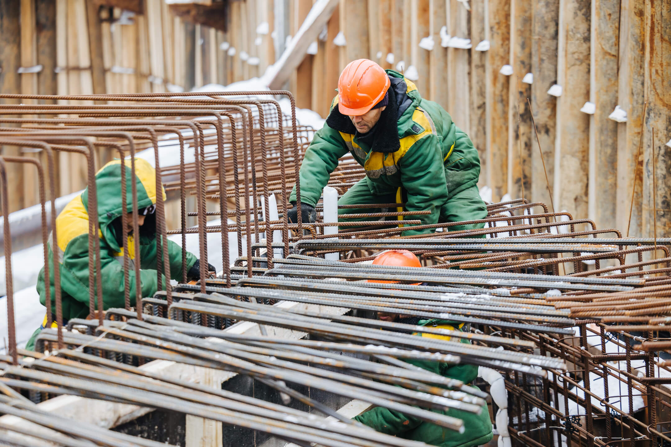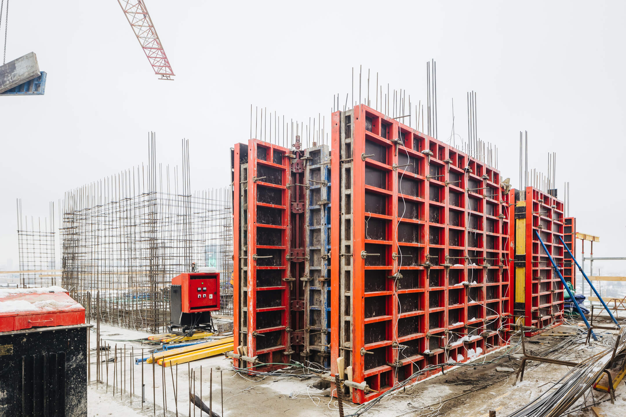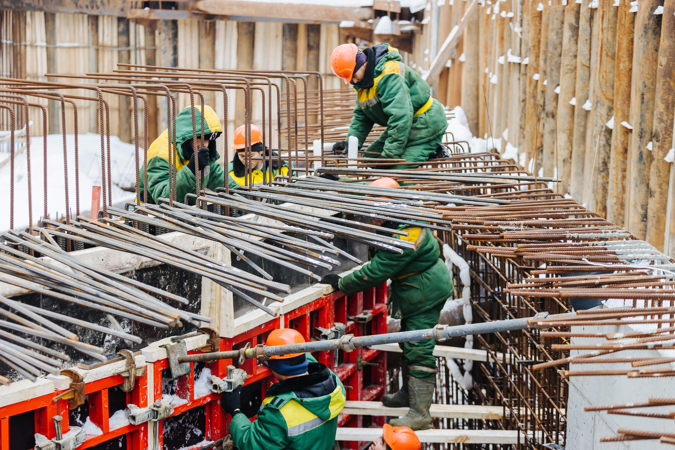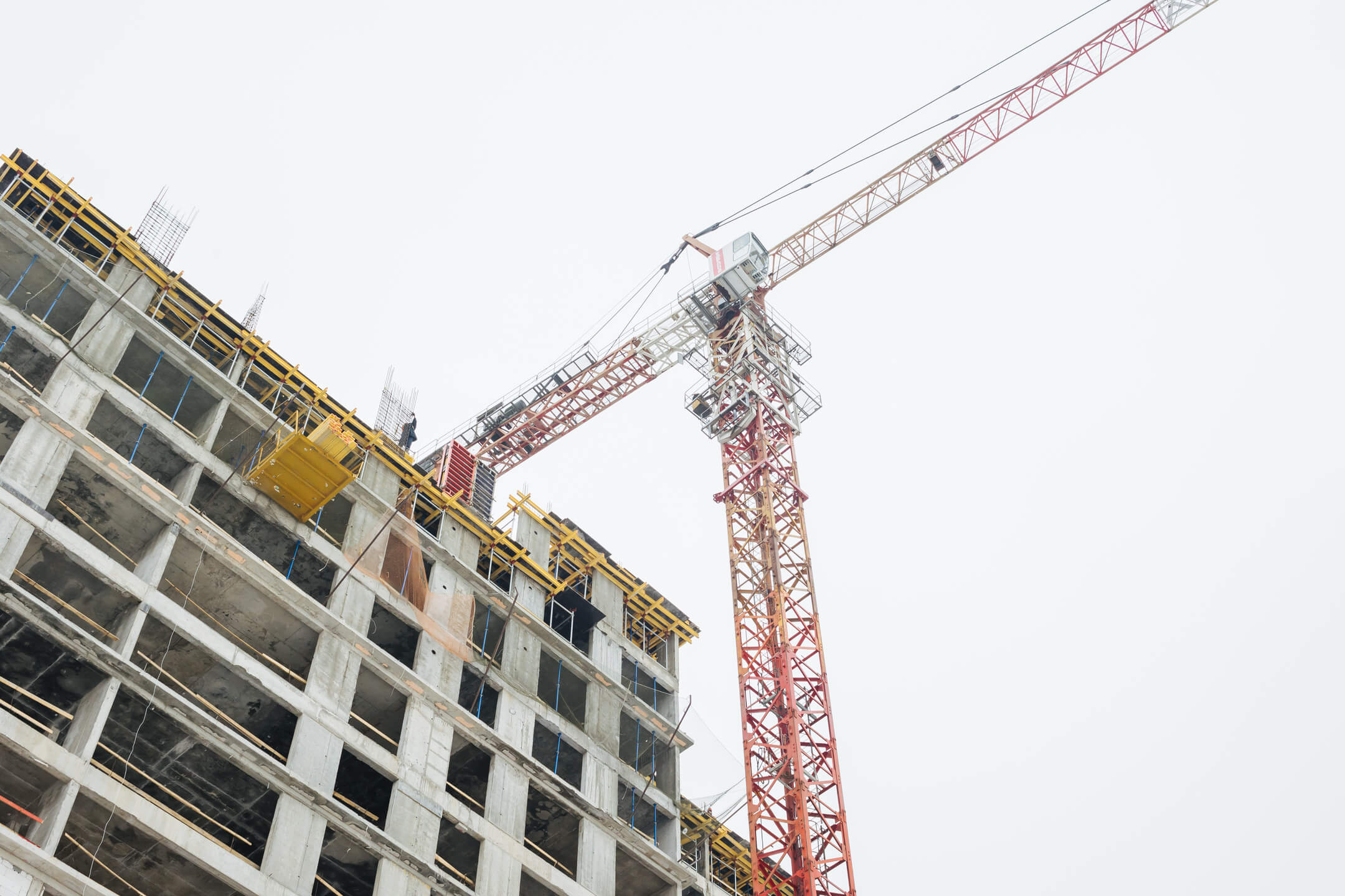 Этап 1.1 (корпус 1): работы по армированию/бетонированию плиты перекрытия 16 этажа и вертикальных конструкций 17 этажа, кладочные работы на 2-8 этажах.