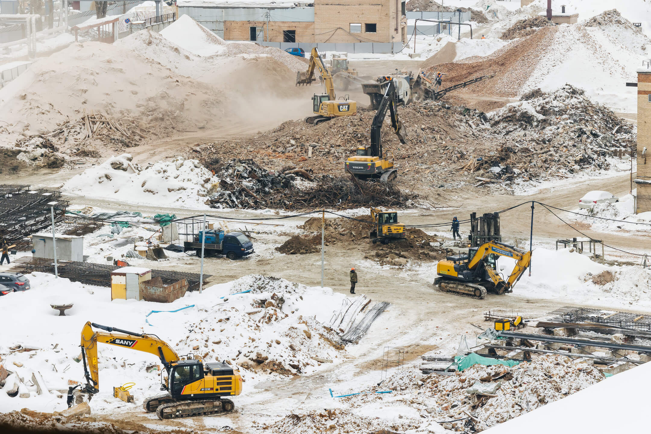Этап 1.2 (корпуса 3, 4, 5, 6): устройство стены в грунте и обвязочной балки, снос зданий и сооружений